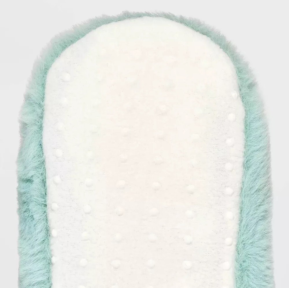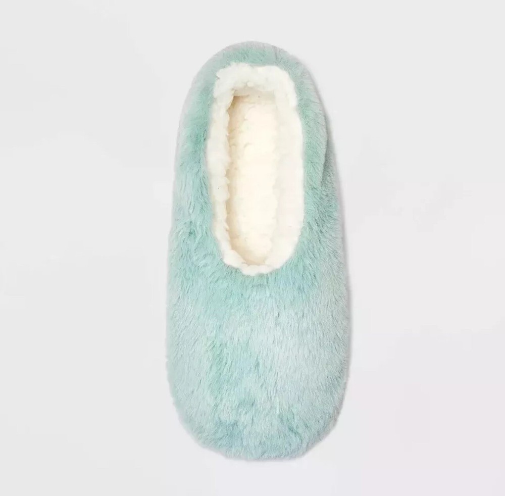 Add some cozy warmth to your feet with these Women's Faux Fur Cozy Pull-On Slipper Socks in a refreshing mint green color. These socks are perfect for any season, whether you're looking for a comfortable addition to your winter wardrobe or a stylish option for summer. The faux fur material provides a soft and luxurious feel, while the non-slip features ensure safety and stability. With a low cut design and a size medium/large fit, these socks are ideal for women who want to stay comfortable and fashionable at the same time. The solid pattern and bed/slipper style make them a versatile option for any outfit, whether you're running errands or relaxing at home. Made by Target, these socks are a must-have for any fashion-savvy woman.