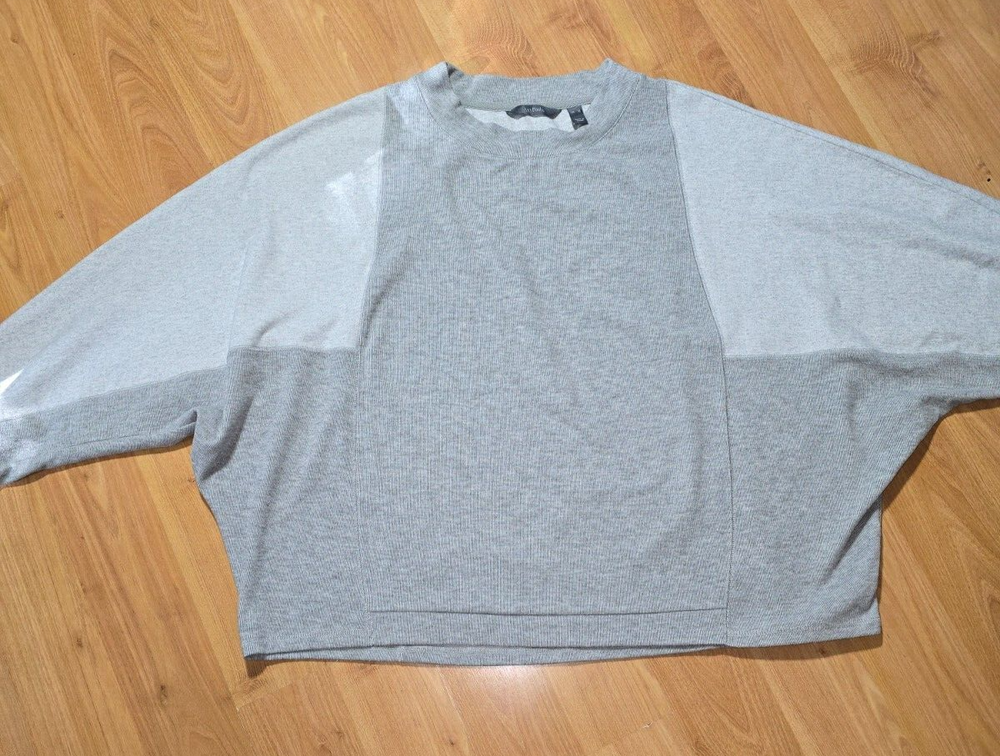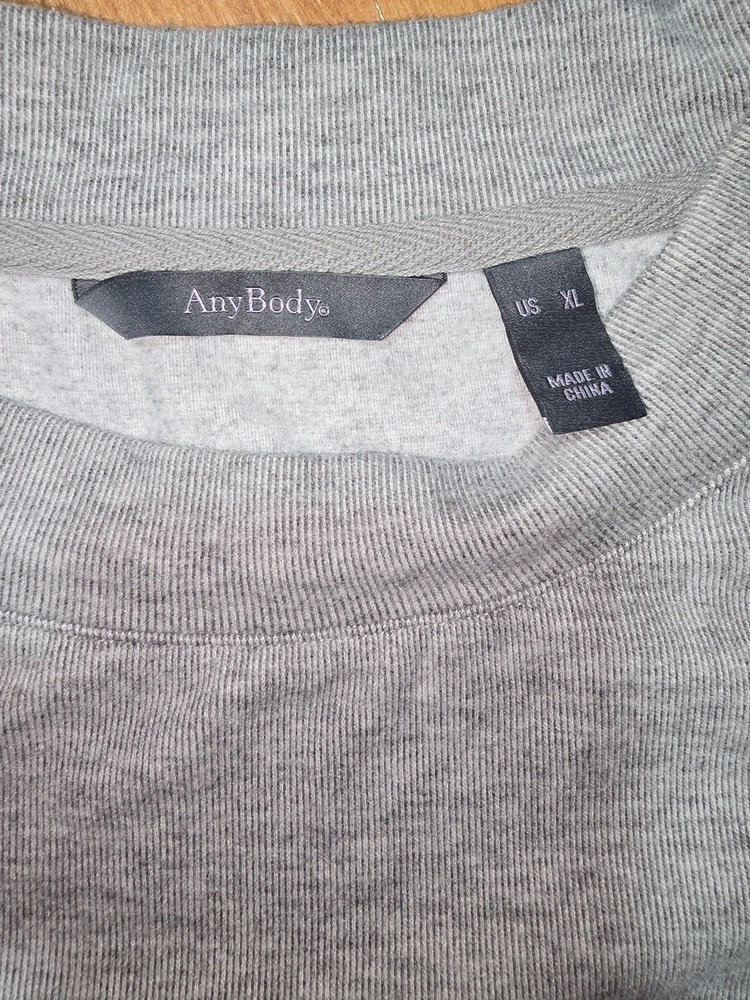 **LIQUIDATING INVENTORY! THE PRICE YOU SEE IS THE PRICE YOU'LL GET! WE DO ALSO ALLOW BUNDLES. JUST MAKE THAT REQUEST, AND WE WILL WORK TOGETHER TO MAKE IT HAPPEN** Elevate your activewear game with this cozy and stylish sweatshirt by AnyBody. The gray color block pattern adds a touch of trendiness to this relaxed fit sweatshirt. The long sleeves and crew neckline make it perfect for cooler weather, while the pullover closure adds convenience and ease of wear. This oversized sweatshirt is made from knit fabric and is designed for a comfortable fit, making it an ideal addition to any women's wardrobe. The XL size ensures a comfortable fit for most women, while the knit fabric adds texture and durability to the garment. Whether you're running errands or hitting the gym, this sweatshirt is a versatile choice that will keep you looking and feeling great. MEASUREMENTS SHOULDERS - 22in CHEST - 33in SLEEVES - 25in BOTTOM OPENING - 27in FULL LENGTH - 25in (LB# 2 )