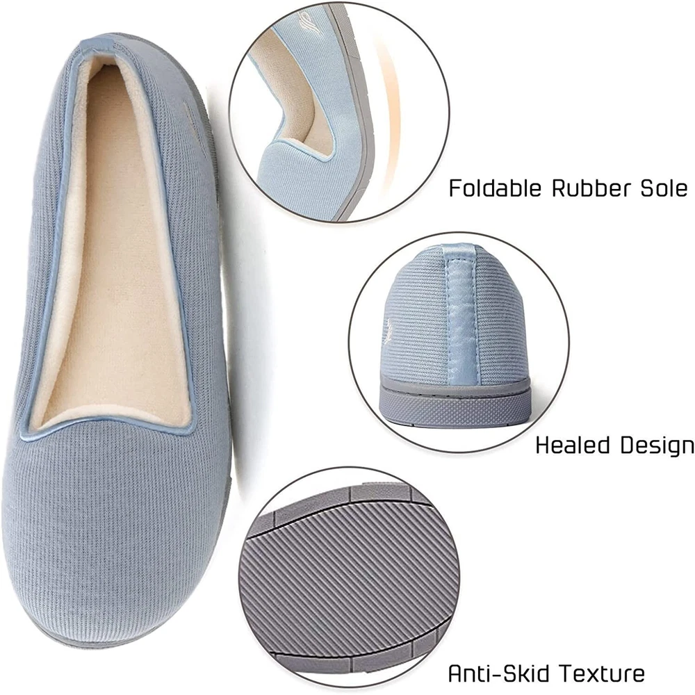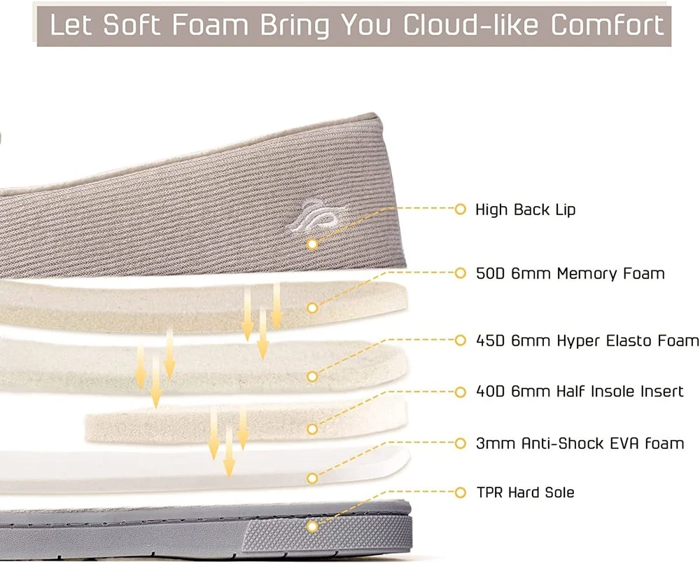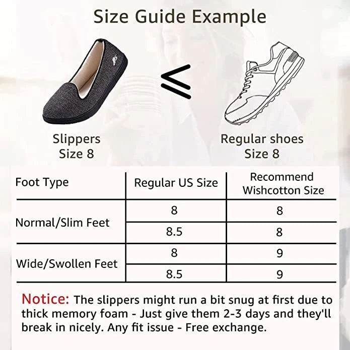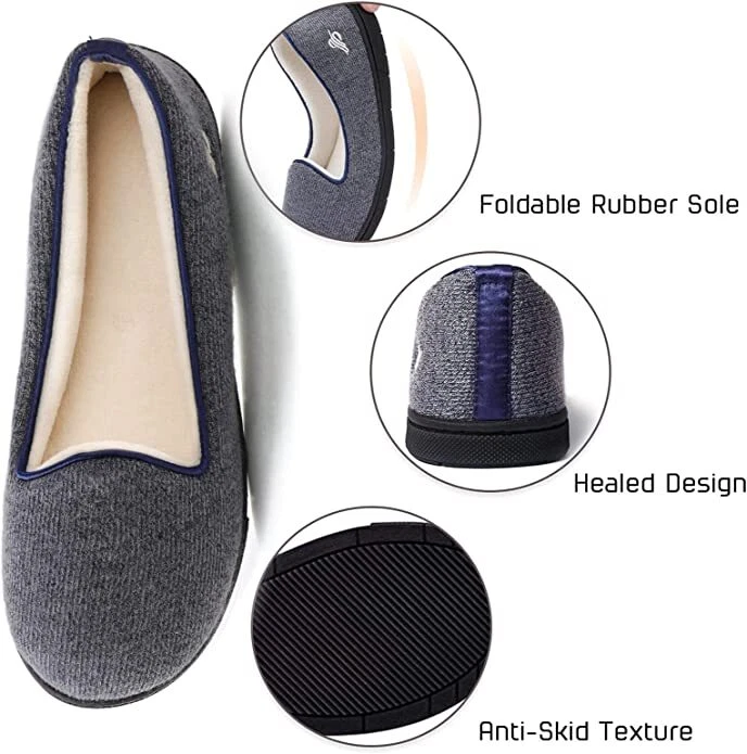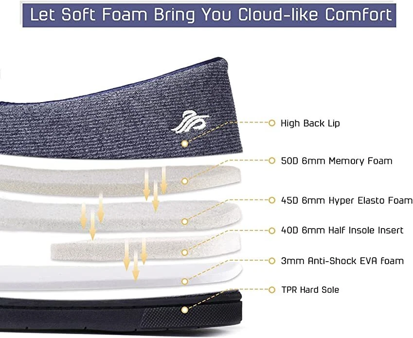 Size Tip: We suggest you order a size up if you are a half size or have wide feet. The slippers might run a bit snug at first due to thick memory foam. Just give them 2-3 days and they'll break in nicely. Any problem, please feel free to contact us. Lightweight Construction: Largest size weighs just 0.8 lb a pair. The slippers keep you light on your feet as you go about your daily chores in the house. Closed Back Heel: High back lip keeps your slippers snug on your feet and your heel from slipping out, securing you when walking up and down stairs; easy to slip on without a shoehorn. Memory Foam Footbed: Cushions and insole conform to the contours of your feet supported by an extra layer of shock absorbing foam. Rubber Sole: Versatile as light indoor shoes for home as well as suitable for stepping outside the house to fetch the paper, check the mailbox; a non-slip natural rubber sole provides both traction and security. Machine washable for easy care.