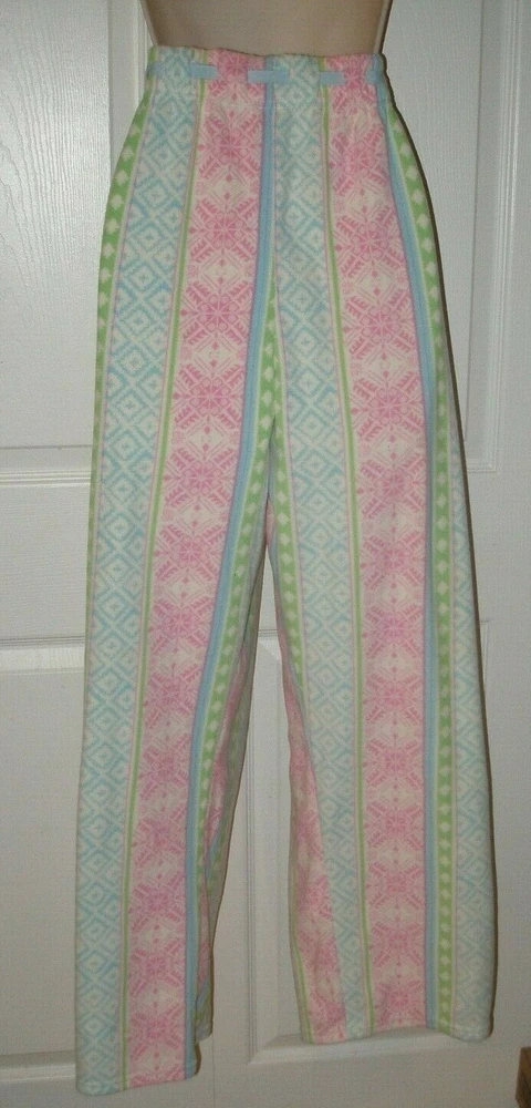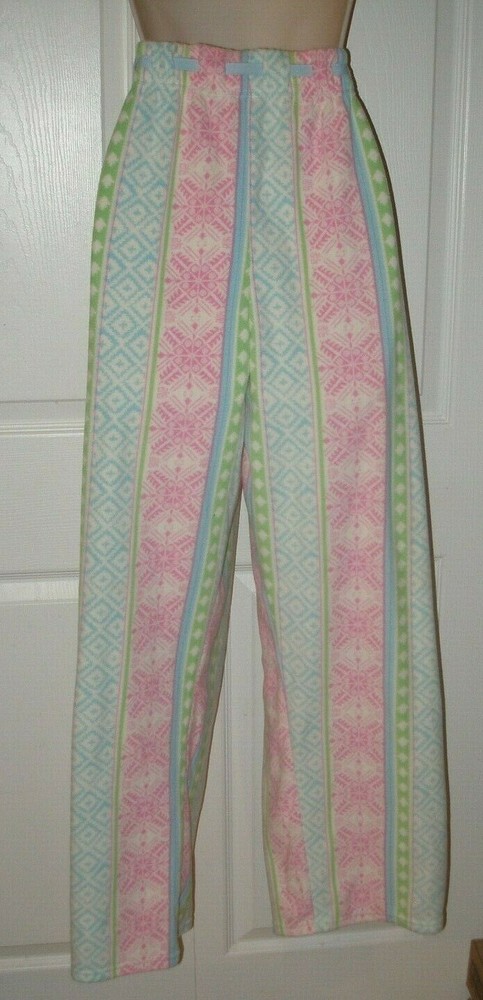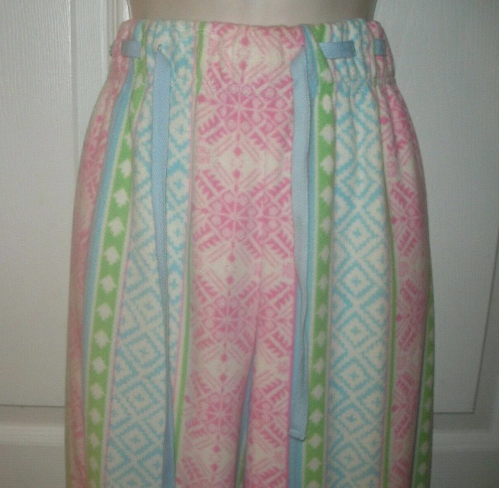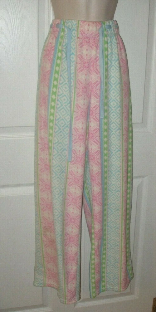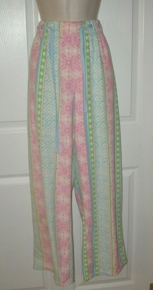 DESCRIPTION Women's Size Large Sleepwear Pajamas Pants Multicolored Elastic Waistband with Adjustable Sting Tie Full Length Pants Comfortable Elastic Waistband Warm, Comfortable, Fabric / 100% Polyester MEASUREMENTS Size Large Length 41 inches Inseam 31 inches Waist 33 inches (Elastic Waistband Stretches) CONDITION Brand New Smoke Free FAST SHIPPING