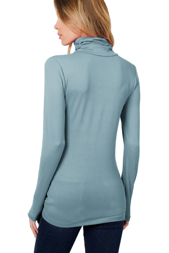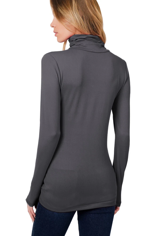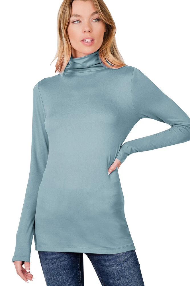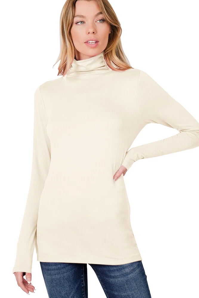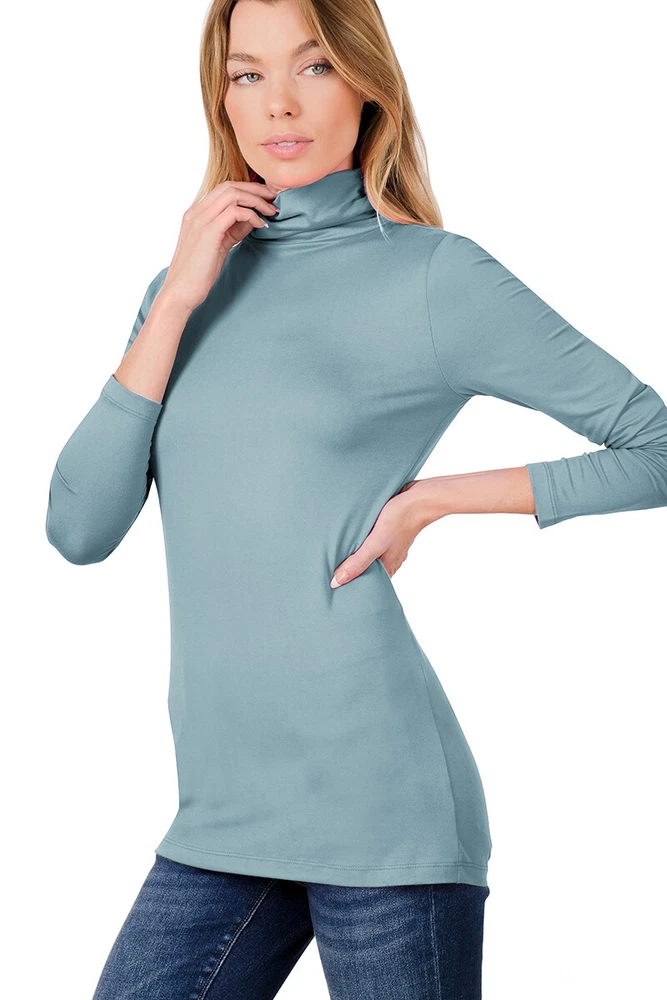 This Long Sleeve Turtle Neck Top is designed to keep you warm and comfortable. It features a classic turtle neck design made from a buttery soft, stretchy fabric for added comfort. Perfect for layering or for wearing on its own. Crafted from quality brushed microfiber fabric, this turtle neck top is designed to cocoon you in unparalleled comfort. Its buttery soft texture feels like a gentle embrace against your skin, making it the perfect choice for those seeking warmth and indulgence. The turtle neck design not only keeps you cozy but also adds a touch of elegance to your attire. Whether you're layering it under a blazer or wearing it solo, this top effortlessly elevates your fashion game while keeping you snug. Fabric: 90% Polyester | 10% Spandex | Brushed Microfiber Fabric Foldable Turtleneck Design for Subtle Style Stretchy | Buttery Soft | Comfortable | Falls to Mid Hip Great to keep you warm | Daily Wear | Long Sleeve