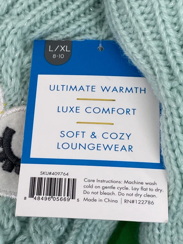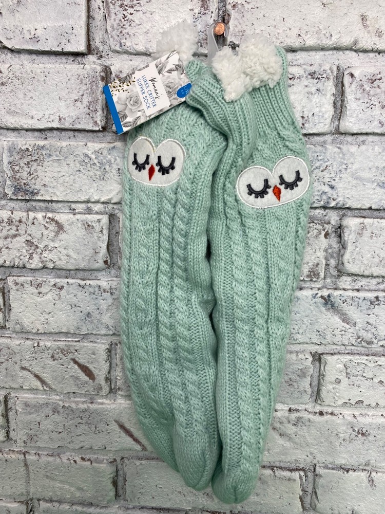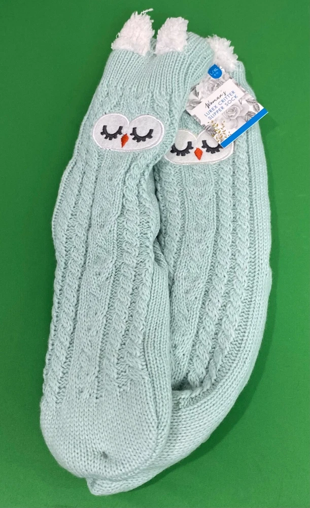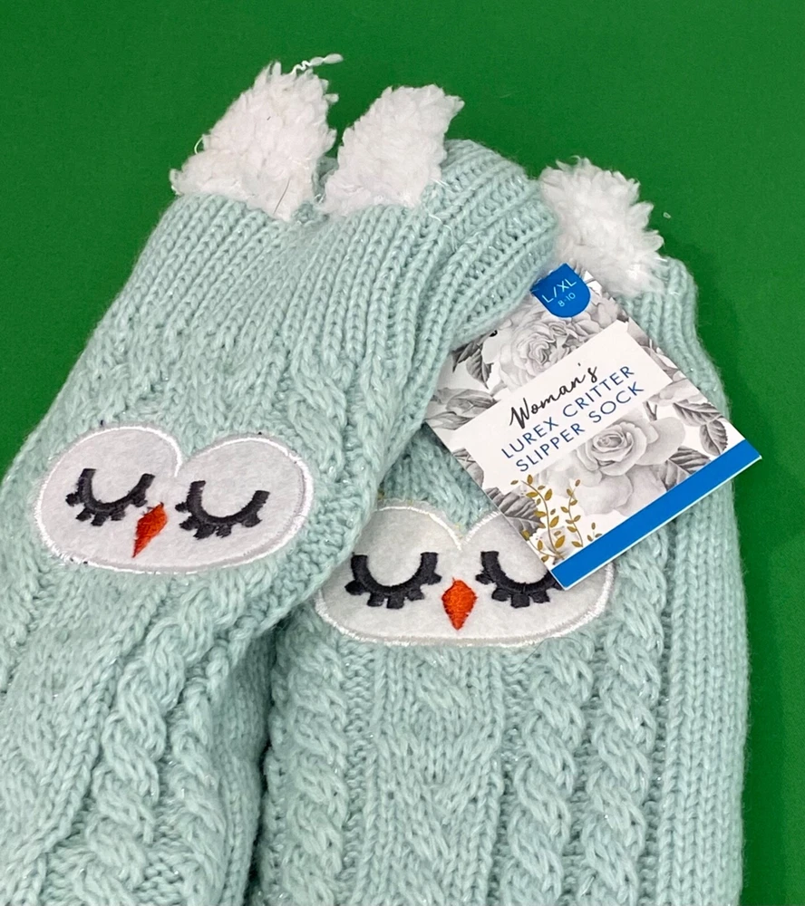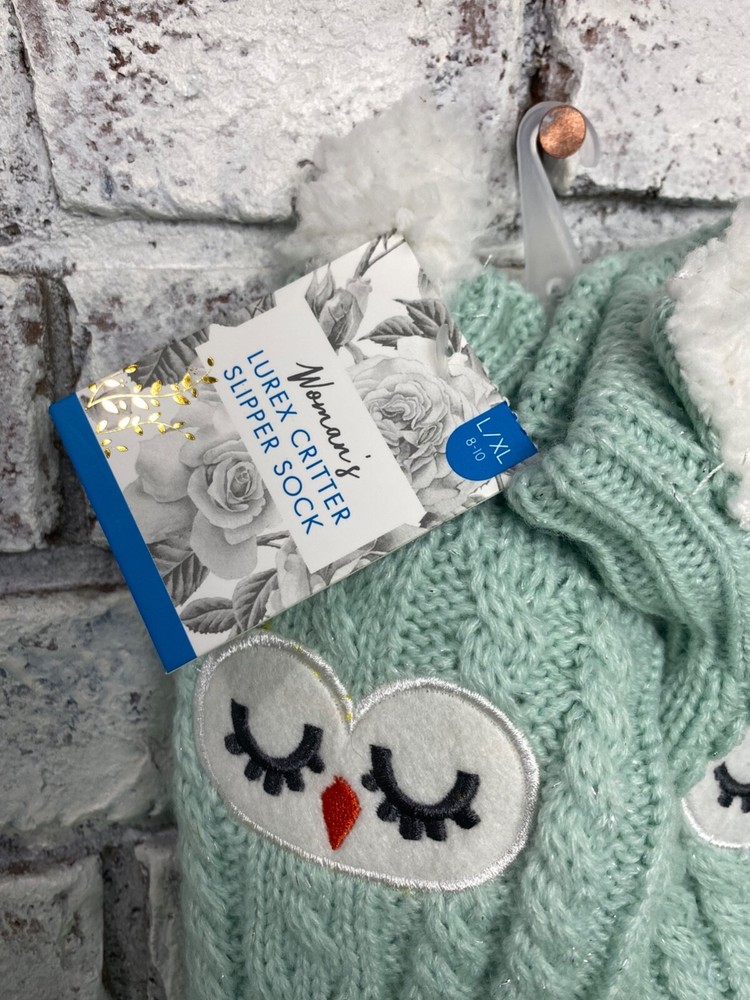 Elevate your loungewear with these women's Lurex Critter Slipper Socks. Adorned with a cute critter design, these socks are perfect for the winter season. Available in size L/XL these cozy socks are machine washable for easy care. Ideal for bed or lounging, the green socks feature lurex detailing for a touch of sparkle. Sold as a single pair, these socks are a must-have for any woman's winter wardrobe. Shop now to add these fun and comfortable socks to your collection.