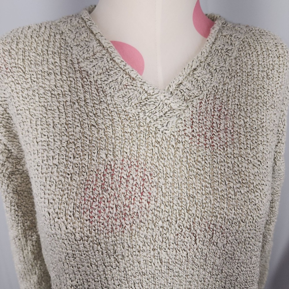 You are looking at a women's sweater. Small spot as shown, I believe it was made that way. Thank you for looking at my listings. All items come from a smoke free home, I do however have dogs, so there may be a stray hair. I inspect all items before I sell them for flaws, I am human, so if I miss something please contact me and give me the chance to fix it before leaving a bad or low rating. Most reasonable offers are considered. Cheapest shipping price is chosen for item(s). I have purchased a shipping scale to try and make sure all the shipping prices are fair and correct. I love making deals and combining bundles, so just ask and I'll be happy to help you. Feel free to ask any questions about the items. Please check out my other items and have a Blessed day! Size: Womens medium Measurements: Bust 20 in / 51 cm Length 22 in / 56 cm Condition: Pre-Owned Good