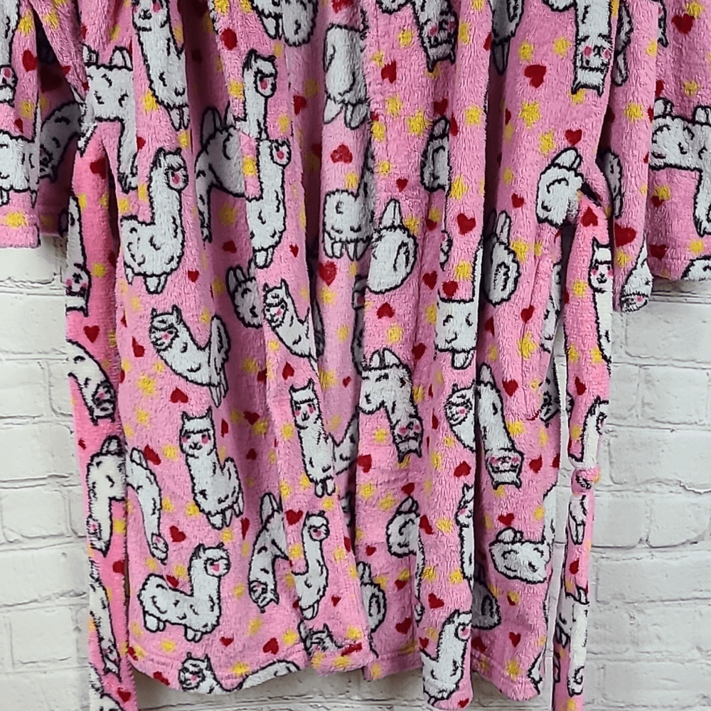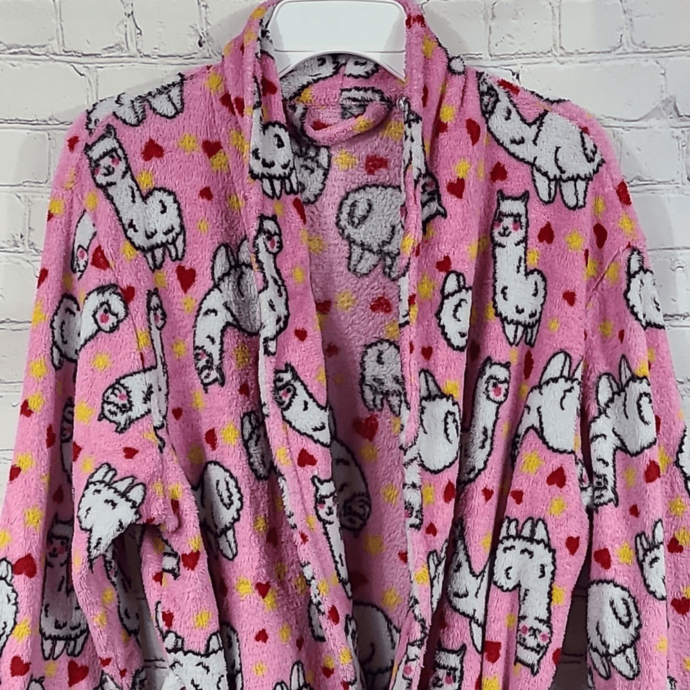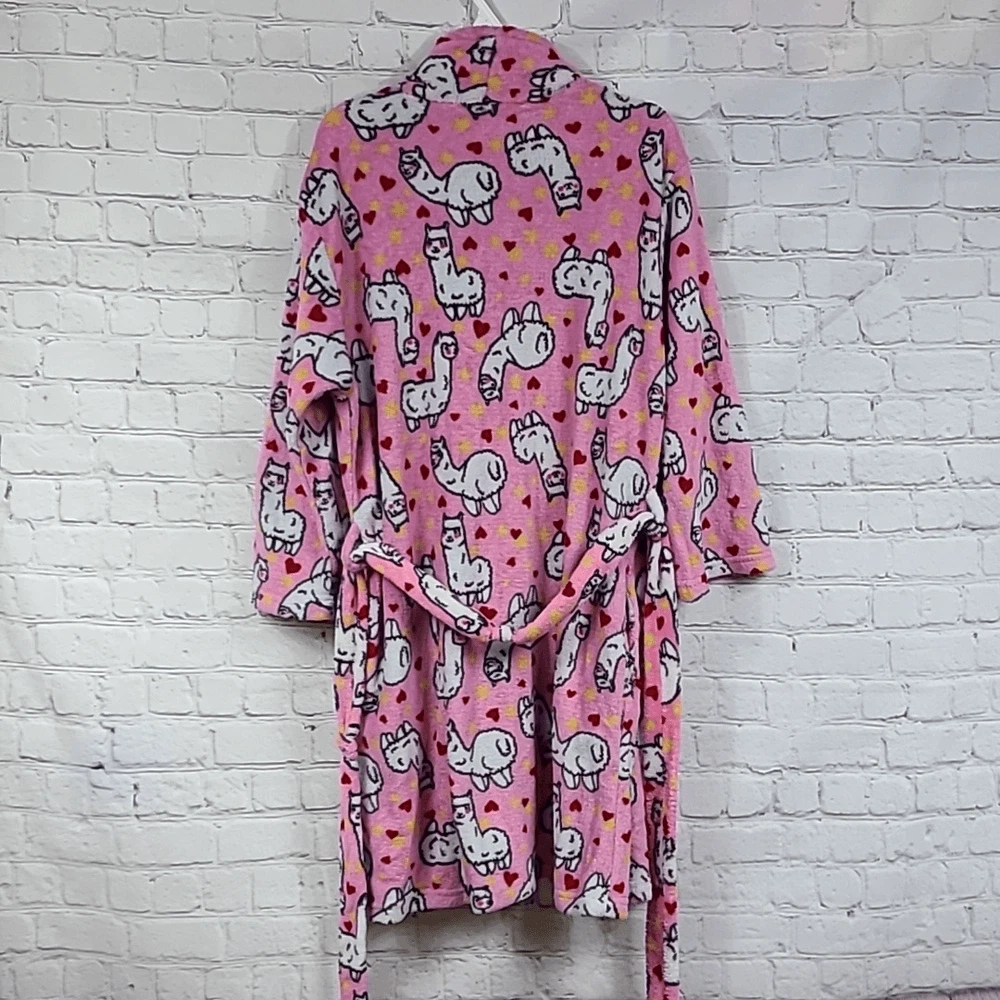 Women's Pink Llama Cozy Plush Fleece Bath Robe Small House Coat Spa Day Bathrobe This soft plush robe will insulate your body from the winter chill while wrapping you in incredible softness. Whether you're stepping out of the shower, heading to bed or making breakfast in the morning, this women's robe will keep you comfortable. The belted waist provides the perfect fit, while two side pockets keep your hands warm and hold on to your phone when you're shuffling around the house. Long sleeves 2-pockets, in seam Open front, tie sash, no inner tie Long, Short, Knee length Color: Pink, white, yellow, red Design: Llama, stars, hearts, animal print Shawl collar Belt included Brand: Love First Sight Size: S, Small Fits Women's Small, open, flexible fit Great pre-owned condition. No damage, inner tie removed, Minimal signs of wear. Measurements Laid Flat Length: ABOUT 34" 🌟 Posh Ambassador ✅Good Offers Accepted ðŸšSmoke-Free Home 👀 Check out my closet for other fab finds! 🧡 Add to Likes List or + to Bundle 🛒 Bundle other items for one shipping rate! 📬Quick Shipping Bath robe Pajama Bathrobe PJs bedtime slumber party pajama day loungewear vacation cute soft comfy cozy house coat house dress loungewear lounge robe womens fleece spa relaxation robe winter fall spring house coat spring summer nightwear stylish house dress lounge garment soft apparel pajamas sleepwear sleep relax hospital overnight bag 2pc set belted robe 310|C2|K50