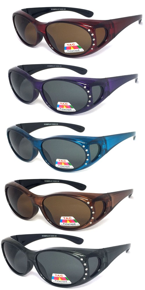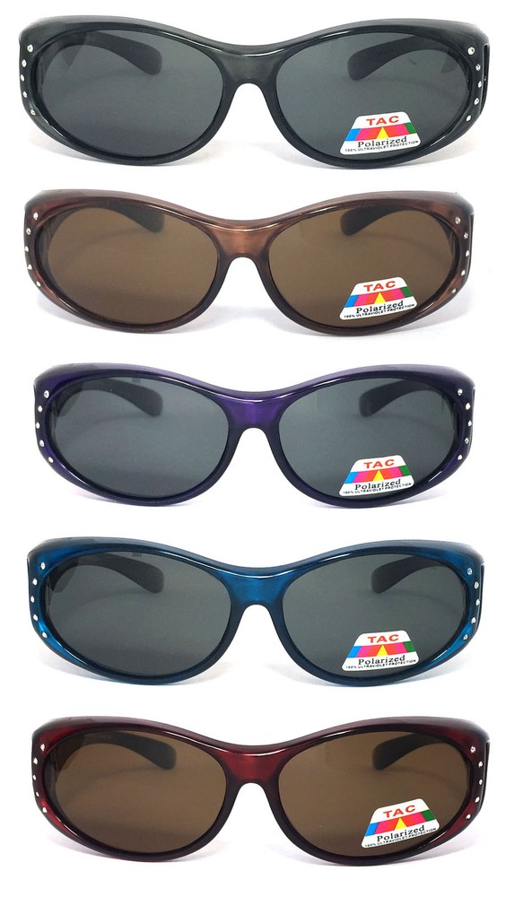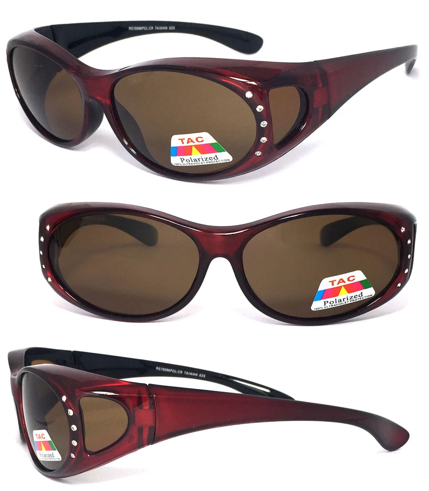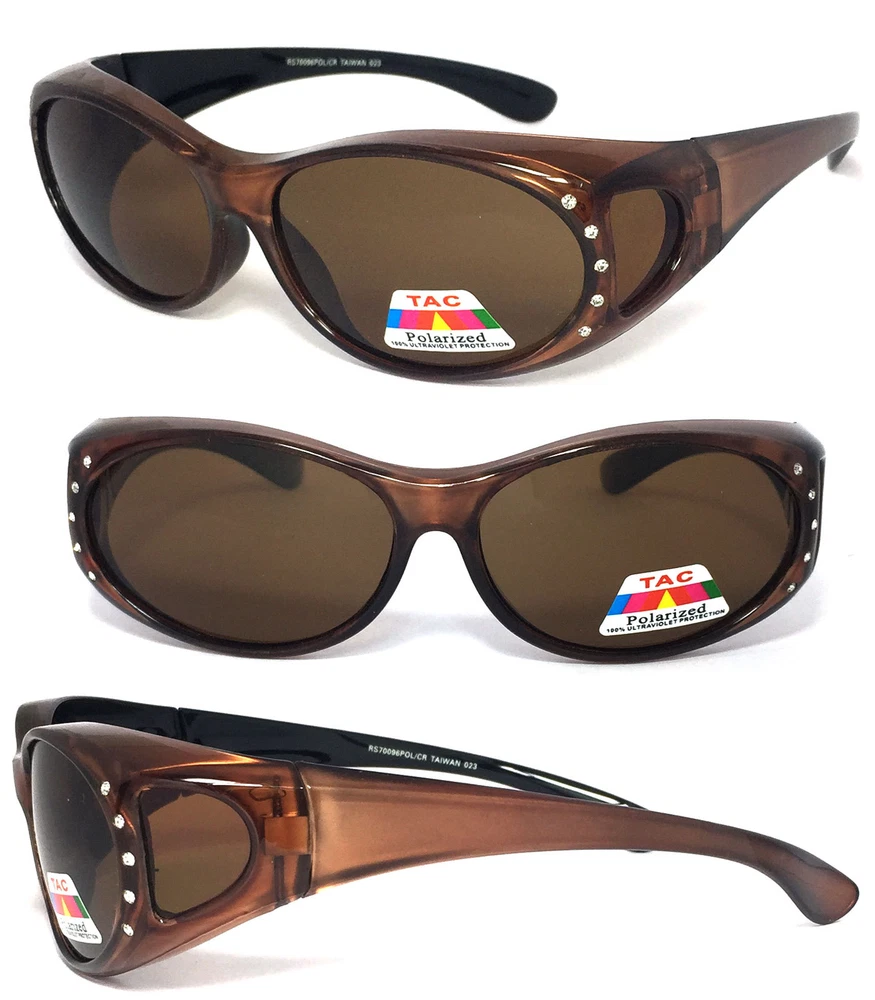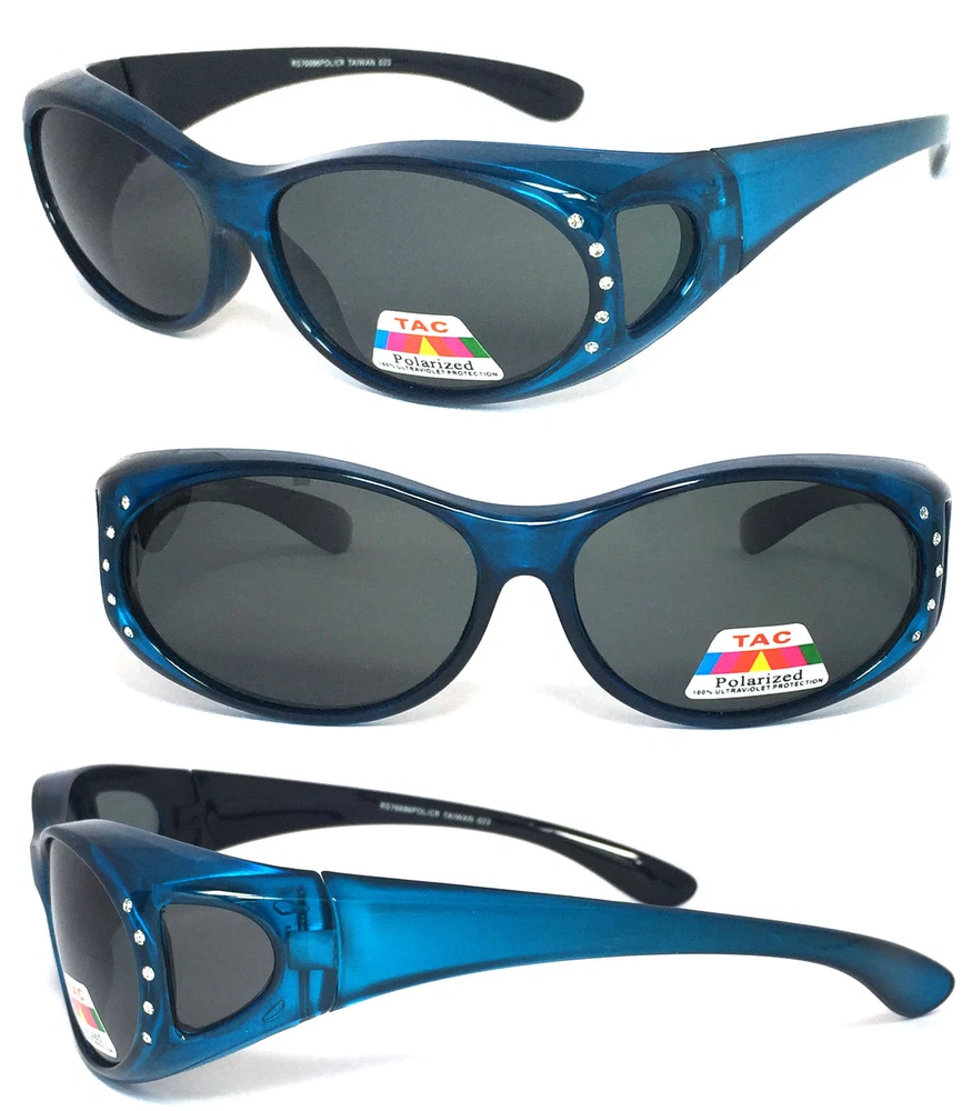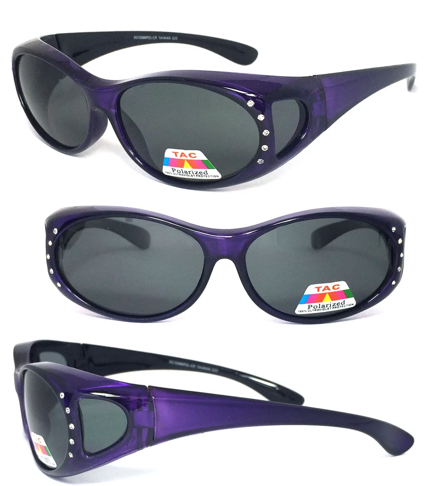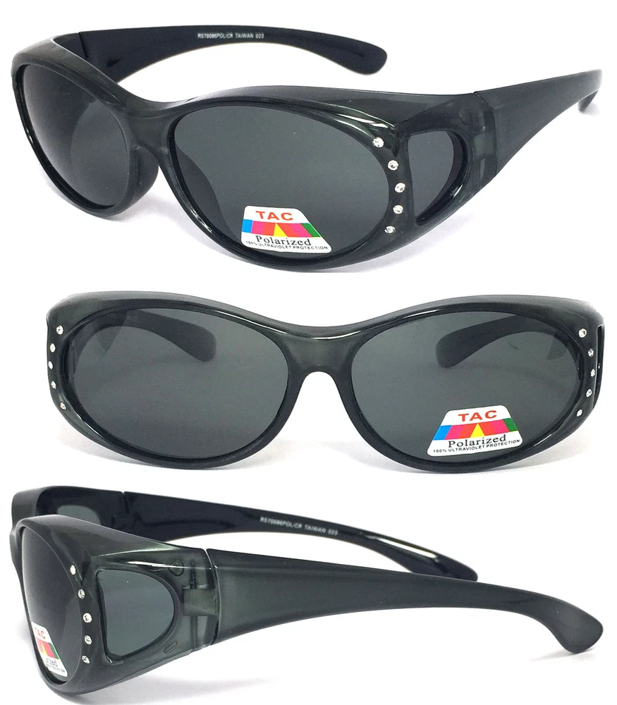 Love these fit-over sunglasses! The polarized lenses cut glare perfectly, and the rhinestone detailing adds a stylish touch. They fit comfortably over my prescription glasses without slipping, making outdoor activities so much easier. Great quality for the price—highly recommend!