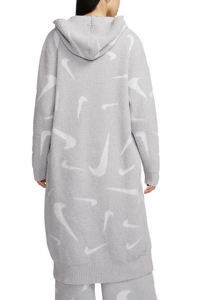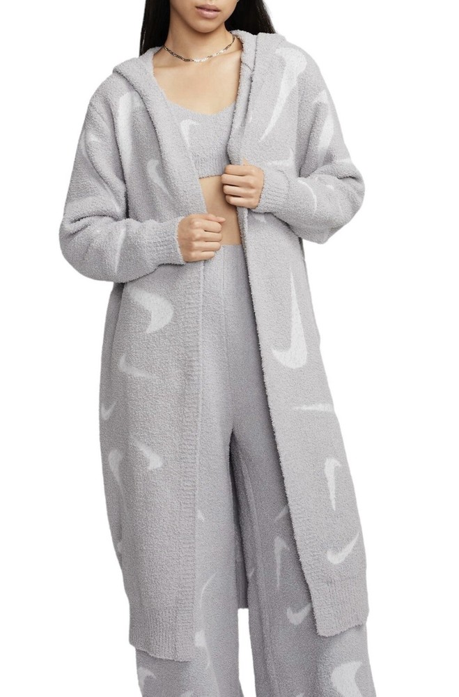 GROUNDED IN STYLE, COMFORT AND VERSATILITY, MEET OUR TAKE ON LUXURY LOUNGEWEAR. PLUSH KNIT FABRIC FEELS BOTH WARM AND BREATHABLE, MAKING THIS COZY CARDIGAN THE PERFECT LAYER FOR RUNNING ERRANDS OR CHILLING AT HOME. WITH A LOOSE FIT AND OVERSIZED HOOD, YOU'LL FEEL LIKE YOU'RE WRAPPED IN A BLANKET ALL DAY LONG. COVER YOURSELF IN LUXURIOUS BOUCLÉ—OUR SOFT HEAVYWEIGHT KNIT THAT HELPS KEEP YOU WARM AND COZY. OVERSIZED HOOD AND MID-CALF LENGTH ADD EXTRA WARMTH AND COVERAGE. 100% AUTHENTIC SIZE: MEDIUM COLOR: LT SMOKE GREY SKU: FD4282-077 98% POLYESTER/1% NYLON/1% SPANDEX MACHINE WASH