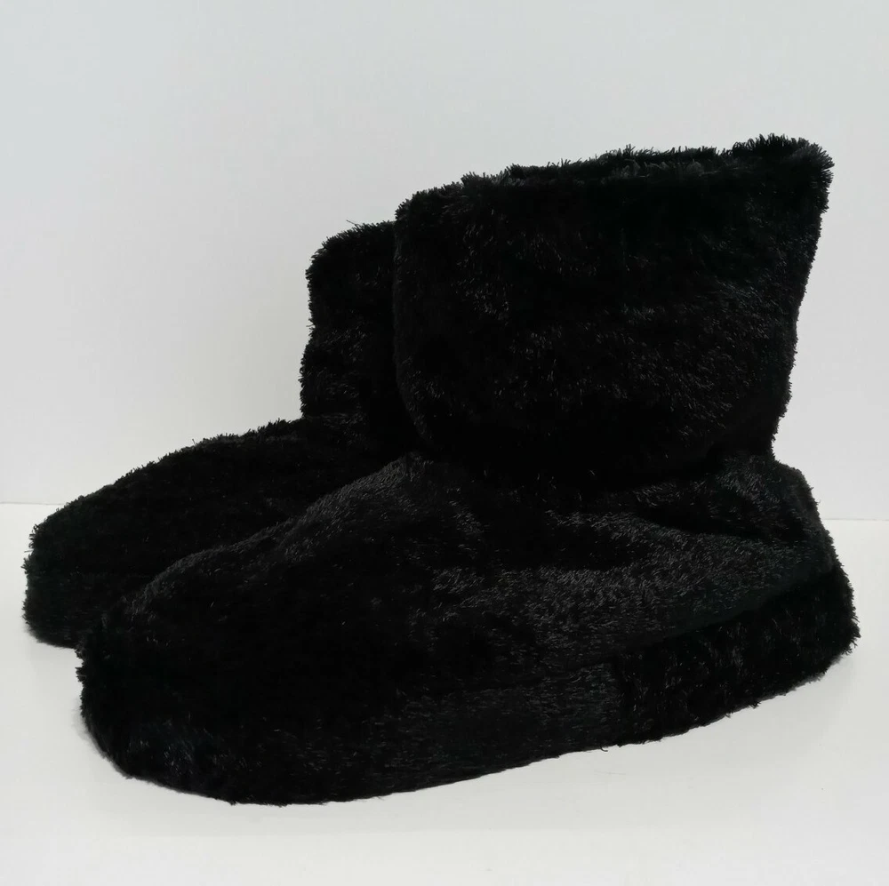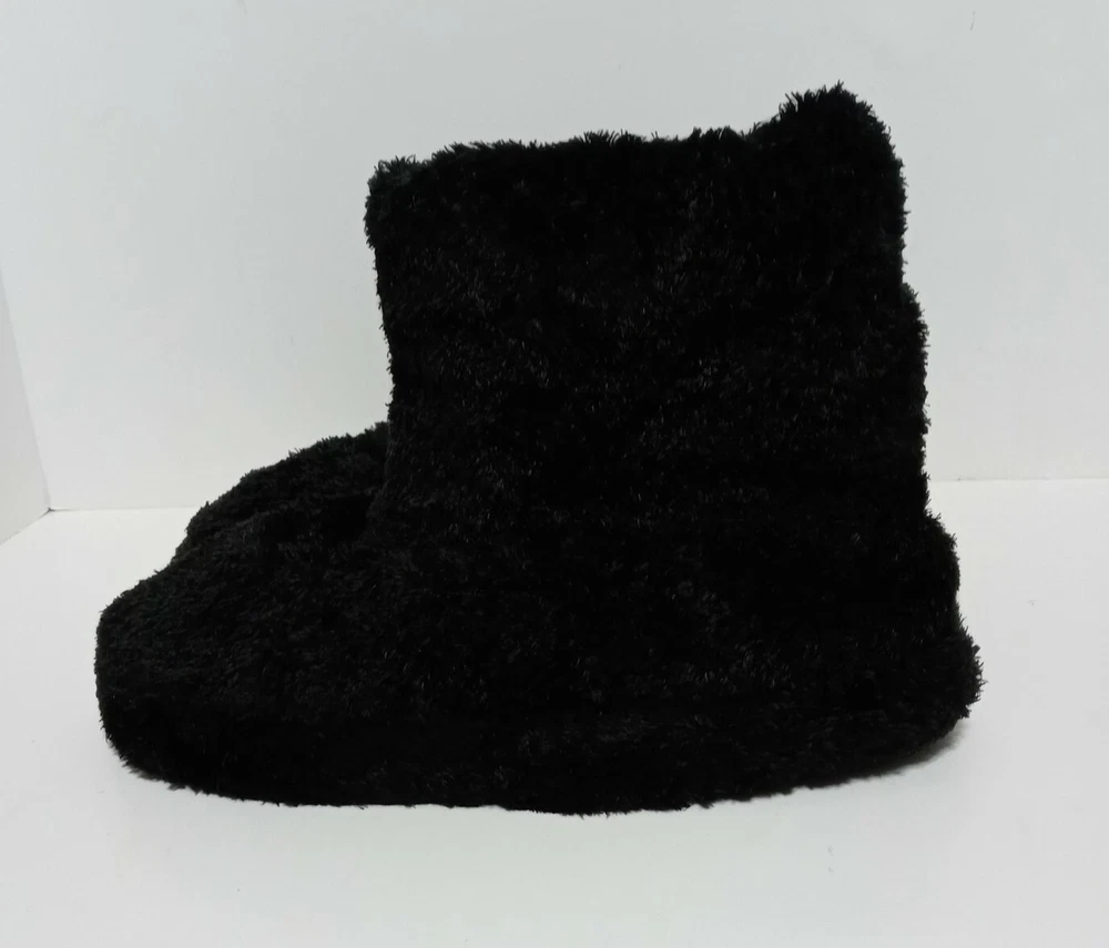 Soft Faux Fur Massaging Slippers Booties Women's Size Large Black Cozy Vibrating New without Tags. Tested and works great. Good pre-owned condition. Please see photos for description.