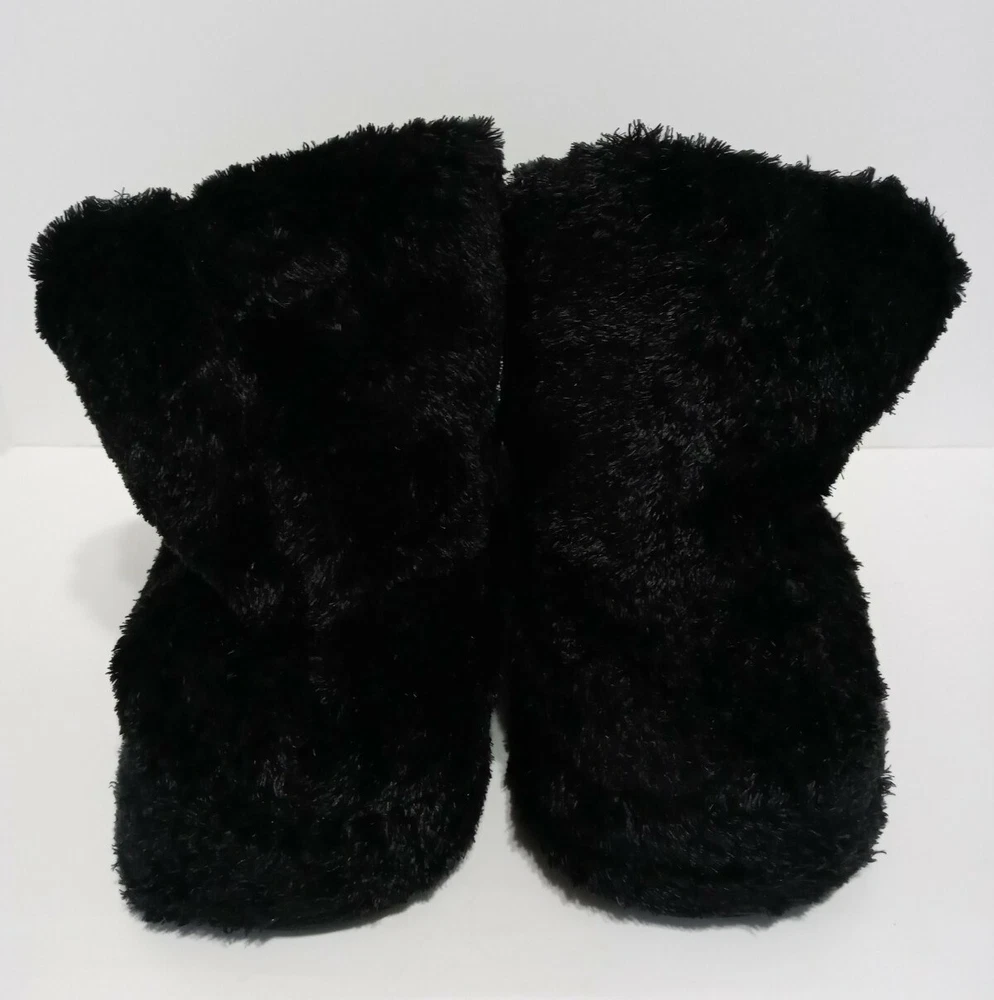 Soft Faux Fur Massaging Slippers Booties Women's Size Large Black Cozy Vibrating New without Tags. Tested and works great. Good pre-owned condition. Please see photos for description....