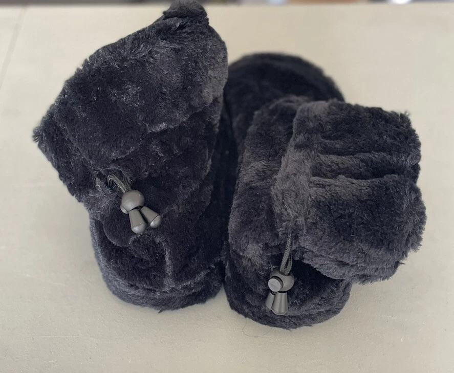 Women's Soft Faux Fur Massaging Slippers Booties Vibrating Largel Black Gently used...