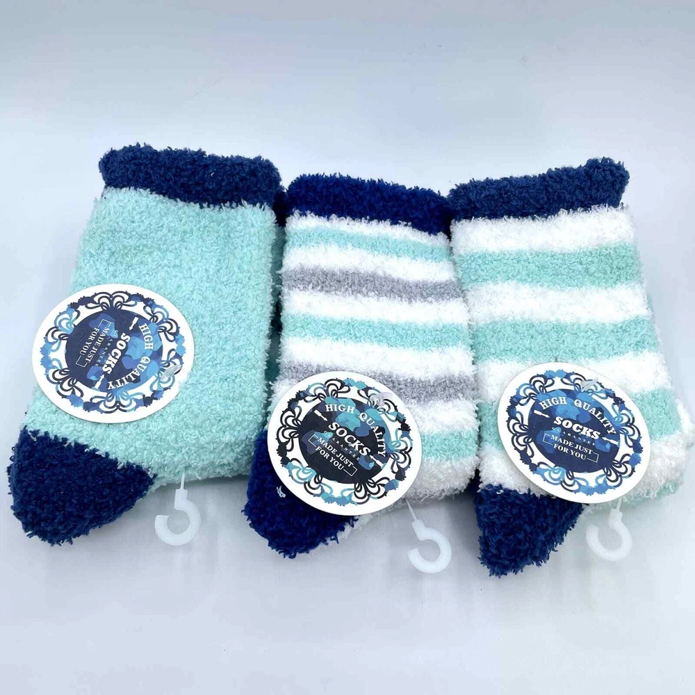 Women's Soft Fuzzy Cozy Socks Set of 3 Teal Green Blue White Size 7-11