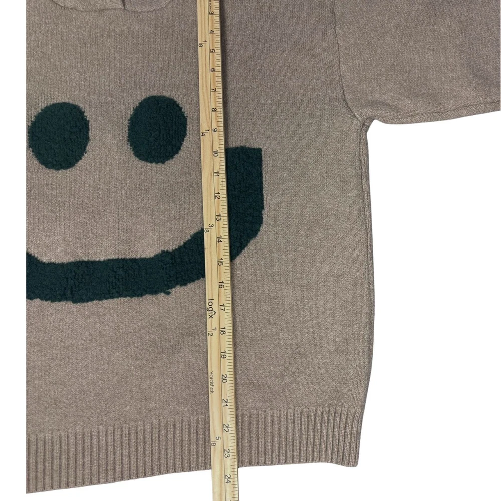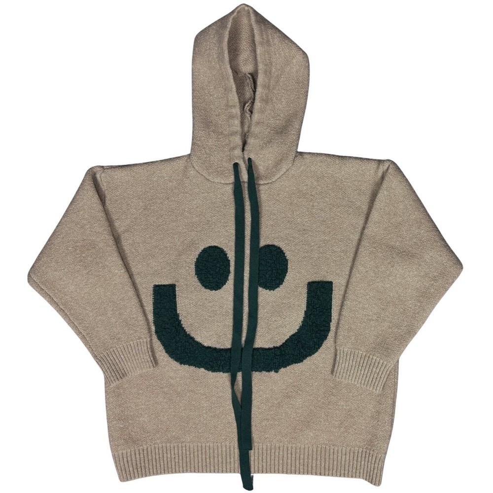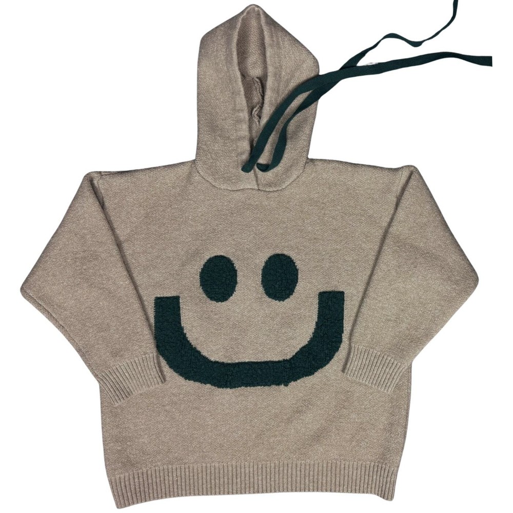 <![CDATA[<div>Womens Happy Sweater Hoodie Pullover Sweatshirt Size: Small on tag but looks more like a medium/large to me Color: Beige & Teal Green Oversized Ribbed hem, sleeves Thick Knit This cozy hoodie is sure to keep you comfortable with its soft texture. Its bold happy face print and contrasting print colors are sure to bring smiles. Hand wash - see care instructions on listing images for more information. Measurements are approximate and taken while laying down flat with no stretching. Tag: trendy, cozy, work, casual, errands, travel, school, winter, spring, fall, comfort, classic, student, going out, chic 24-0466