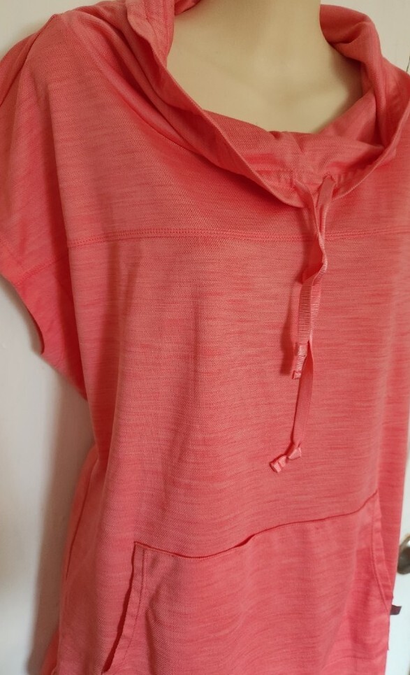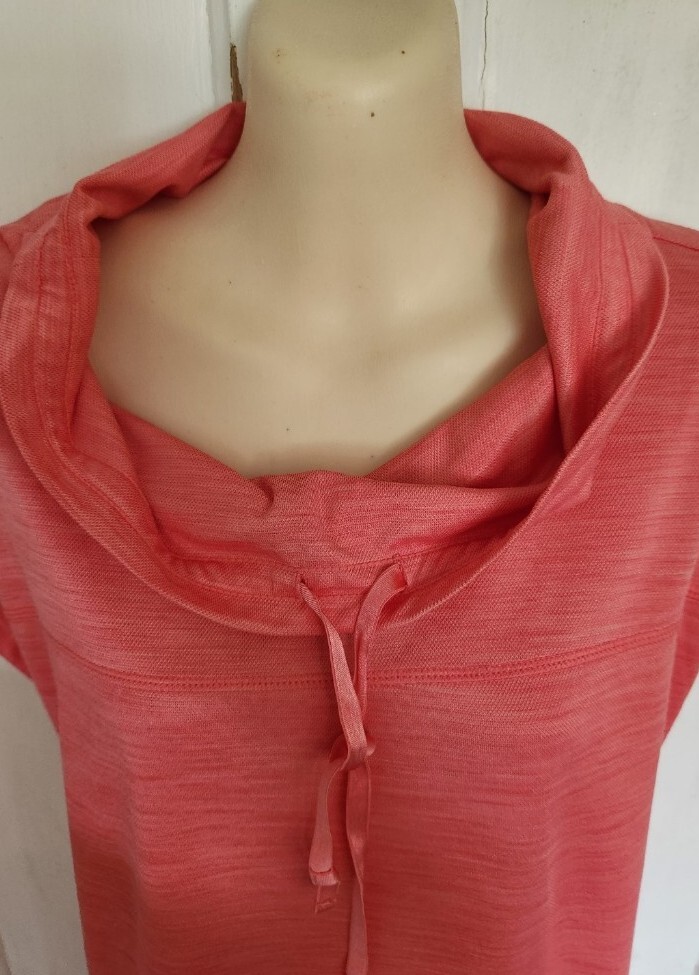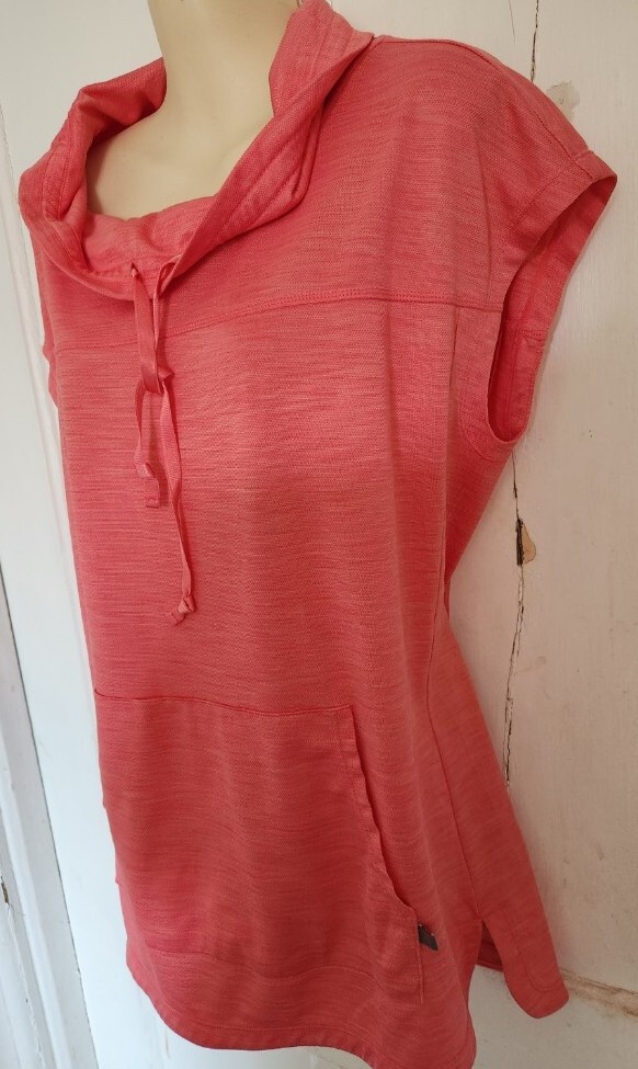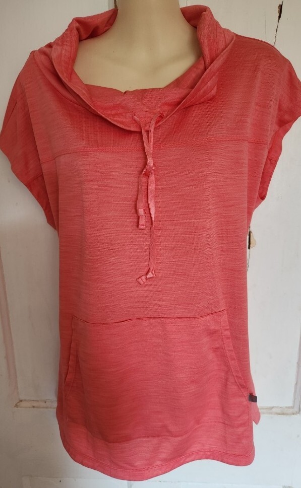This peach-colored top from designer Talbots is a must-have for any fashion-forward woman. With a cowl neckline and cap sleeves, this top is perfect for a casual occasion. The soft and cozy material is made of polyester, and the front pocket adds an accent to the plain pattern design. This women's top is perfect for those who want to look stylish and comfortable at the same time. It comes in size X and is perfect for plus-sized women. Ideal for any season, this designer top showcases a unique style and is made in Vietnam. Get ready to make a statement with this fashionable top that features pockets and suits any wardrobe. This measures 27" from the top of the shoulder to the bottom hem and laying flat from underarm to underarm measures 24". Please check out all the wonderful items I have up for your bidding pleasure.