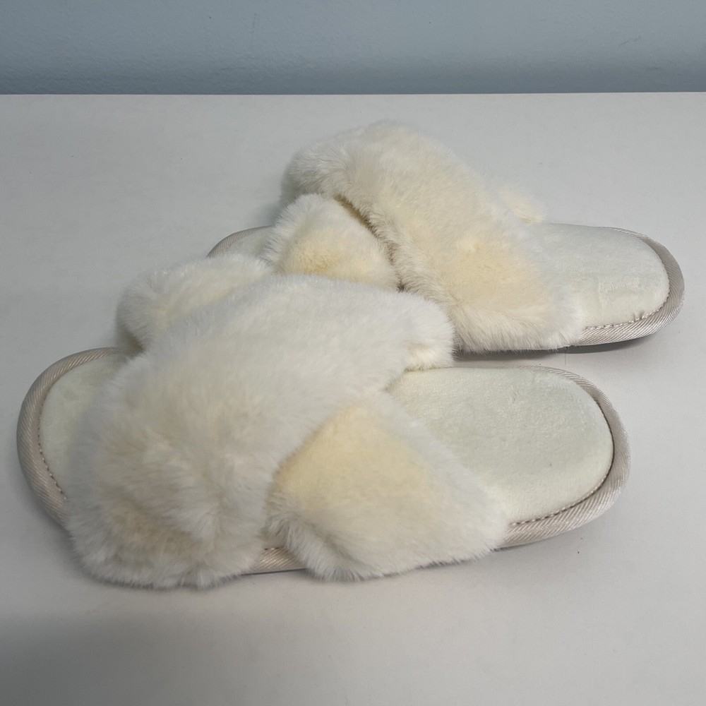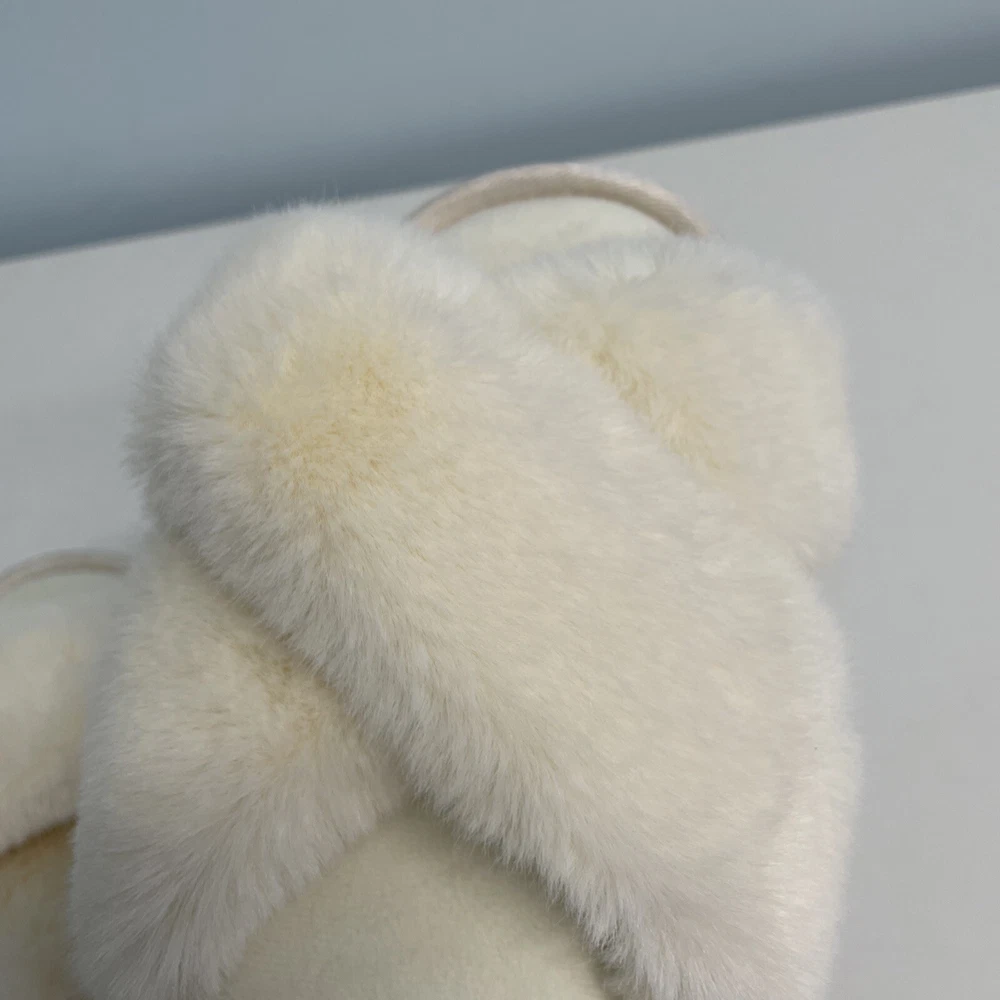 Women's Cross Band Slippers Soft Plush Furry Cozy Open Toe House Shoes Faux Rabbit Fur Warm Comfy Slip On Breathable US Size: 5/6 EU: 36/37 NEW Gorgeous and super soft 6Z