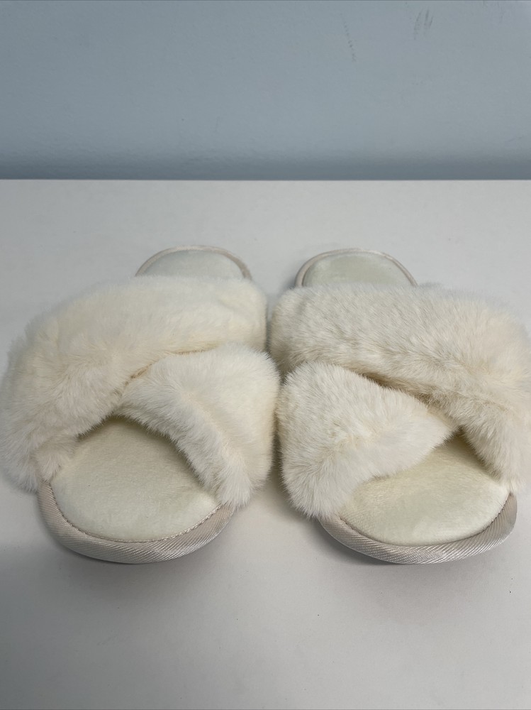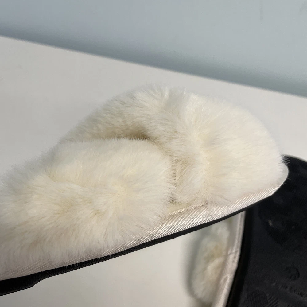 Women's Cross Band Slippers Soft Plush Furry Cozy Open Toe House Shoes Faux Rabbit Fur Warm Comfy Slip On Breathable US Size: 5/6 EU: 36/37 NEW Gorgeous and super soft 6Z...