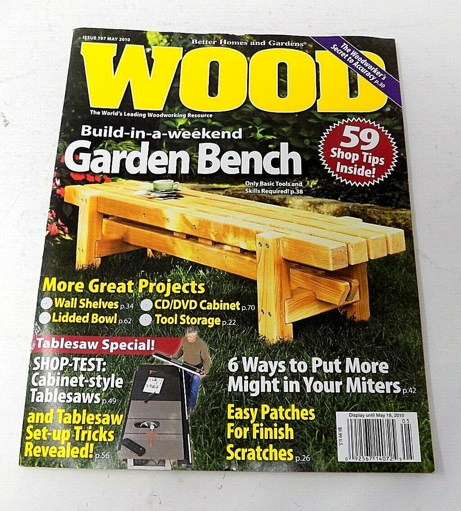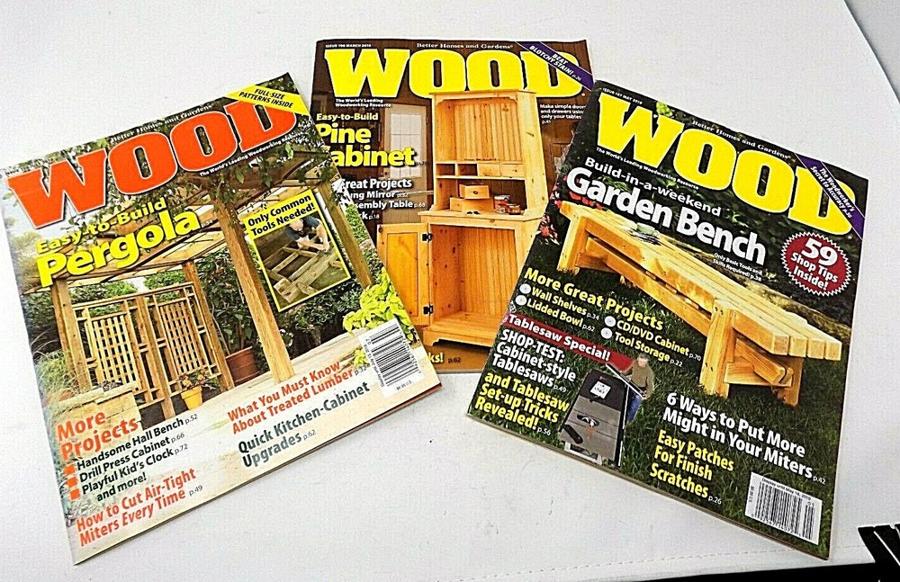 Wood Magazine - Lot of 3 - March, May, July 2010 Better Homes & Garden Publication May 2010 *Build a Weekend GardenBench * Plus More March 2010 * Easy to Build Pine Cabinet * Plus More July 2010 * Easy to Build Pergola * Plus More Magazine From smoke-free environment Pictures are of actual item listed Pre-Owned - Like New - Never Read No blemishes Typically ships same day or next day