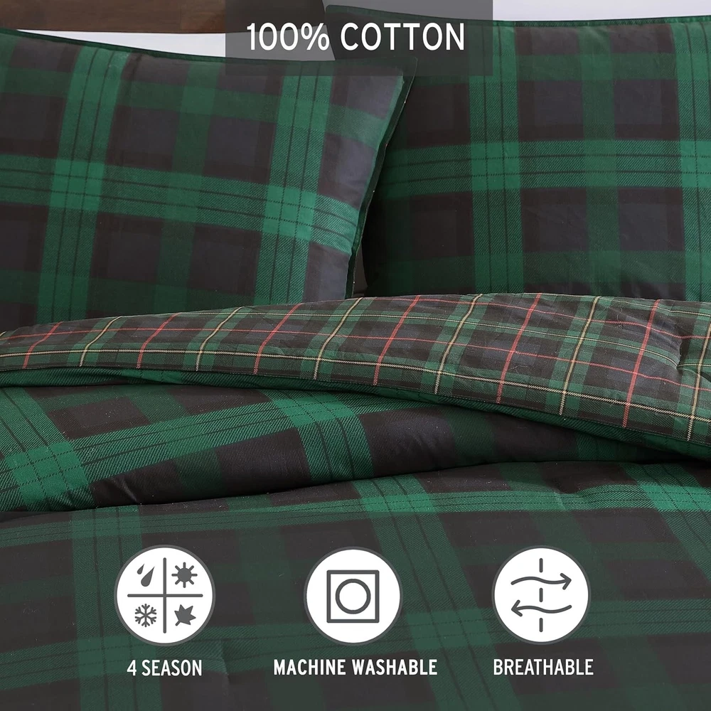 Woodland Plaid King Comforter Set - Cozy 100% Cotton with Reversible Design ‹ › ‹ › ‹ › ‹ › ‹ › ‹ › ‹ › ‹ › ‹ › Woodland Plaid King Comforter Set Cozy 100% Cotton with Reversible Design Set Includes: (1) King Comforter (2) Matching Shams Product Features: Crafted from 100% Cotton for a soft, breathable experience. Bold plaid pattern in shades of dark green and navy, reversible to a finer plaid print in red, green, and navy. Durable construction ensures a cozy, long-lasting feel. Dimensions: Comforter: 96"L x 108"W Shams: 21"W x 37"L Care Instructions: Machine washable for effortless maintenance. Machine wash cold, separately on a delicate cycle. Tumble dry low, do not bleach. Thread Count: 180 Elevate Your Bedroom Decor Transform your sleeping space into a sanctuary of style and comfort with the Woodland Plaid King Comforter Set. With its striking bold plaid pattern that evokes a sense of nature and rustic elegance, this exquisite comforter not only offers warmth but also enhances your bedroom aesthetic. The reversible design gives you the versatility to refresh your decor effortlessly, offering two beautiful looks in one. Crafted entirely from soft, breathable cotton, this comforter is designed to ensure your utmost coziness while delivering a long-lasting quality that you can depend on. The generous dimensions provide ample coverage, making it an ideal centerpiece for your king-sized bed. Embrace the warmth of home and nature with the Woodland Plaid King Comforter Set. Experience unmatched comfort and timeless style today! Shipping Free & Fast Shipping - We offer free shipping to most of the USA with a normal delivery time of 3-7 days. However, due to the current situation, additional delivery time (up to 3 weeks) may be required for some items. Alternative Carriers - We may use alternative carriers (e.g. USPS, FedEx, UPS, etc.) to ensure your package arrives safely and on time. Due to the use of multiple carriers, we are unable to provide a tracking number automatically. Handling Time - Orders are processed and shipped within 1-2 business days of receiving cleared payment. Shipping Restrictions - Shipping to Alaska, Hawaii, Puerto Rico, Guam, and other US territories may incur shipping charges or delivery restrictions. Please contact us before ordering, or your order can be refunded/cancelled. State Restrictions - There may be restrictions based on your state of purchase. For example, certain items may not be shipped to California due to state regulations. Contact for Tracking Updates - If you require tracking updates or have any concerns about the delivery of your order, please feel free to contact us, and we will be happy to assist you. Return 30-Day Hassle-Free Returns - We want you to be completely satisfied with your purchase. If you are not, you can return the item within 30 days of receiving it for a full refund or exchange. Easy Return Process - To start a return, simply contact us and we will provide you with a prepaid return shipping label and detailed instructions. Restocking Fee - There are no restocking fees for returns. However, the buyer is responsible for return shipping costs if the return is not due to a seller's error. Refund Processing Time - Refunds will be processed within 5 business days of receiving the returned item in its original condition. Payment We accept all major credit cards, PayPal, and Apple Pay for your convenience. Your payment information is secure and encrypted to ensure a safe and seamless transaction. Please complete your payment within 3 days of purchase to avoid any delays in shipping. Feedback Your feedback is extremely important to us. We strive to provide the best products and customer service possible. If you are satisfied with your purchase, please take a moment to leave us a positive review. If you have any concerns or issues with your order, please contact us before leaving negative feedback. We are committed to resolving any problems and ensuring your satisfaction. Contact Us If you have any questions or concerns, please feel free to reach out to our customer support team. You can contact us through the eBay messaging system. We are available Monday to Friday, 9:00 am to 5:00 pm EST, and we will do our best to respond to your inquiry within 24 hours. Buy it now and enjoy a pleasant shopping experience! UPC: Not Set Model: Not Set Set Includes: Comforter Material: Cotton,100% Cotton Features: Breathable,Reversible,Durable Character: Not Set Theme: Plaid Care Instructions: Do Not Bleach,Machine Wash,Machine Wash Cold,Tumble Dry Low Department: Unisex Baby & Toddler,Kids,Teens,Adults,Unisex Adult Room: Bedroom Labels & Certifications: Not Set Size: King Type: Comforter Set Brand: Unbranded Color: Woodland Tartan Green Fill Material: Polyester Pattern: Plaid Item Width: Not Set Item Length: Not Set MPN: Not Set Character Family: Not Set Number of Items in Set: 3 Insulation: All Seasons Style: Lodge Season: All Country/Region of Manufacture: Not Set Closure Type: No Closure Thread Count: 180 Drop Length: Not Set GSM (Grams per Square Meter): Not Specified Product Line: Not Set Personalize: Not Set