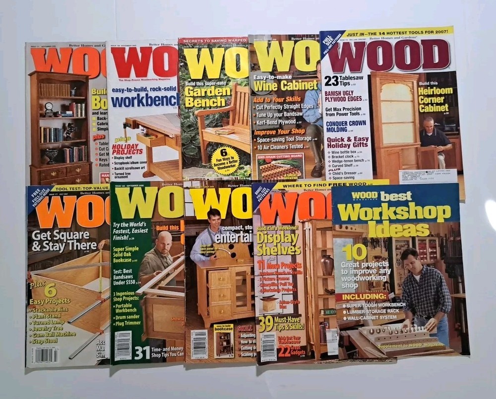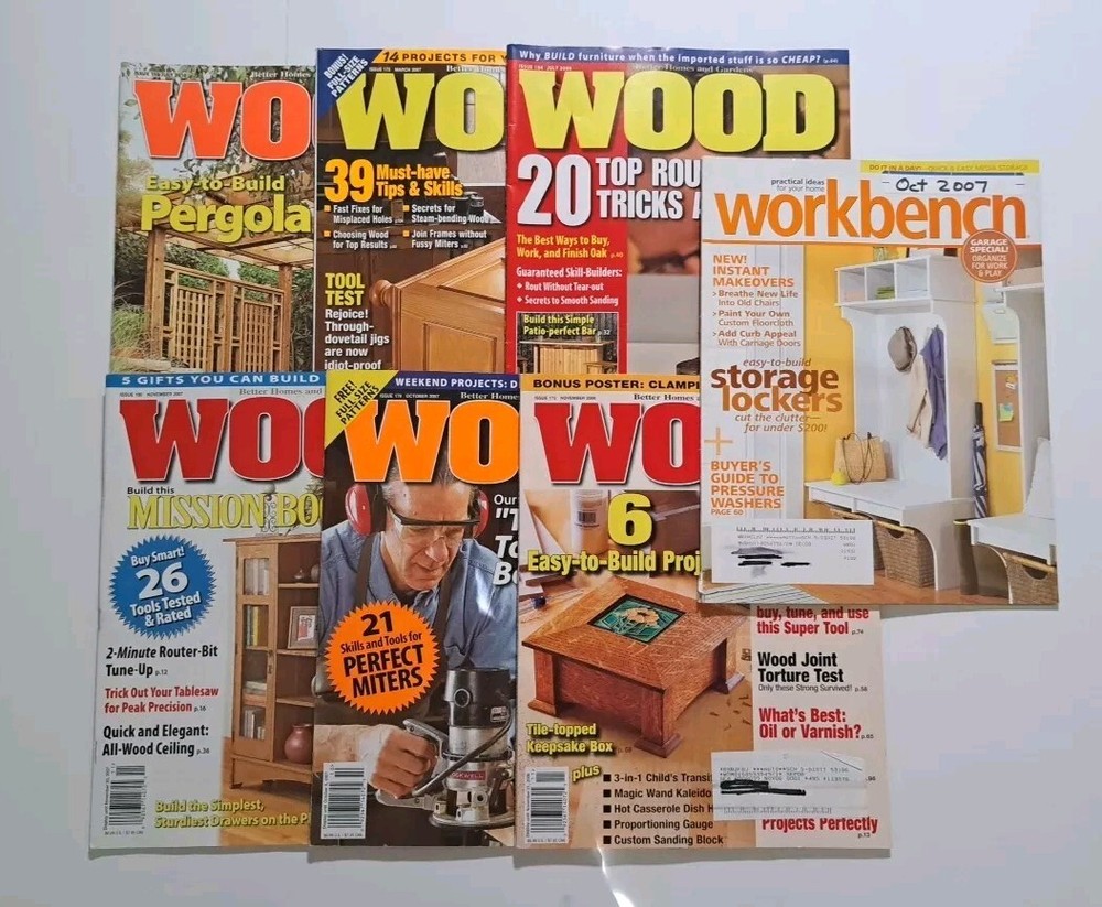 You will be getting the exact lot of magazines pictured. Lot of 25 Better Homes and Gardens WOOD Magazines Popular Woodworking magazine lot This lot of woodworking magazines is perfect for the person who enjoys building things. All the magazines are used, and some have removable tabs in them. Don't let this get away. See pictures to make your own decision on condition. Follow me for NEW LISTINGS DAILY. Shipping:$13.50 (USPS GROUND ADVANTAGE) I ship same day payment is received.