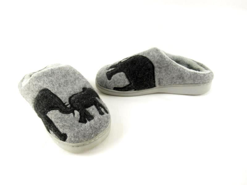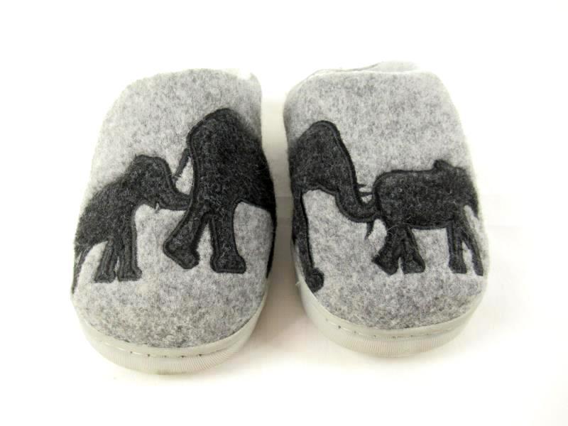 Step into comfort with these World Of Wildlife women's slippers in size XXS. The gray and black fleece textured fabric showcases adorable elephant designs, making them a fun addition to your loungewear. These slippers are in good pre-owned condition and measure approximately 3.5" tall and 9.5" long. Perfect for cozying up at home or adding a playful touch to your relaxation time!
