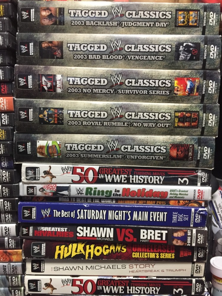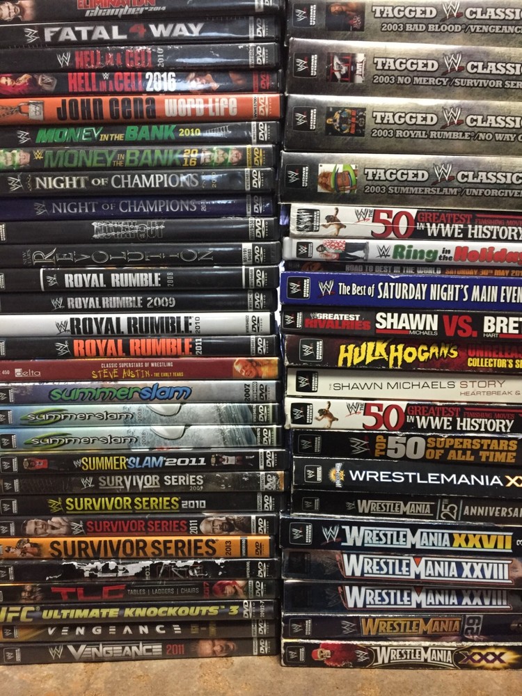 These are Wrestling DVDs, primarily WWE. Just select a title you want and add it to your shopping cart. Add additional ones and you will get discounts when checking out. Postage is automatically calculated and combined when purchased together. Postage is $4.75 for the first title and only $.50 for each additional. Check out my other listing for other great DVD and Blu Rays deals. Ebay for some reason wont combine shipping across my various listings, so what I do is refund the excess shipping after you check out, Just message me if I forget to do that. 1-3 DVDs are shipped in bubble mailers, 4 or more are shipped in a box. Buy more to ensure the best and safest shipping.