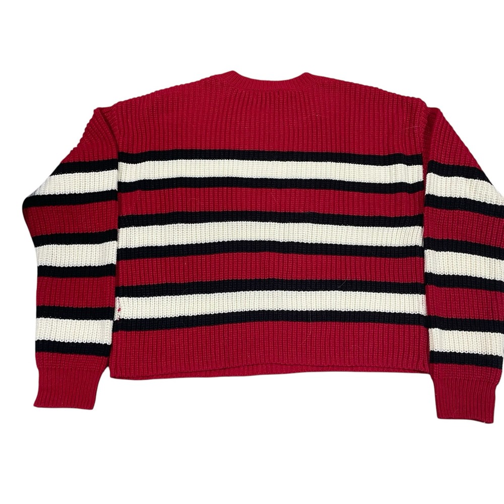 <![CDATA[<div>This lovely sweater is brand new from a higher end styling service. The sweater features a beautiful knit stripe in red, white, and navy blue. It is the perfect cozy, warm sweater for any season. Styling accessories are sold separately so please see my other listings if you like them. Measurements are approximate and taken to the best of my ability with the item lying flat. Please compare to an item you already own that fits you well to ensure you get the right fit with your purchase. Reach out with any questions or offers and I'll gladly get back to you. Thanks and have the best day. Approximate Measurements: Size:large P2P: 22” Length: 21.5” A-101-25 #comfortcore #casual #preppy #classic #patriotic #america #knit #sweater knit cozy warm soft fluffy texture knitted