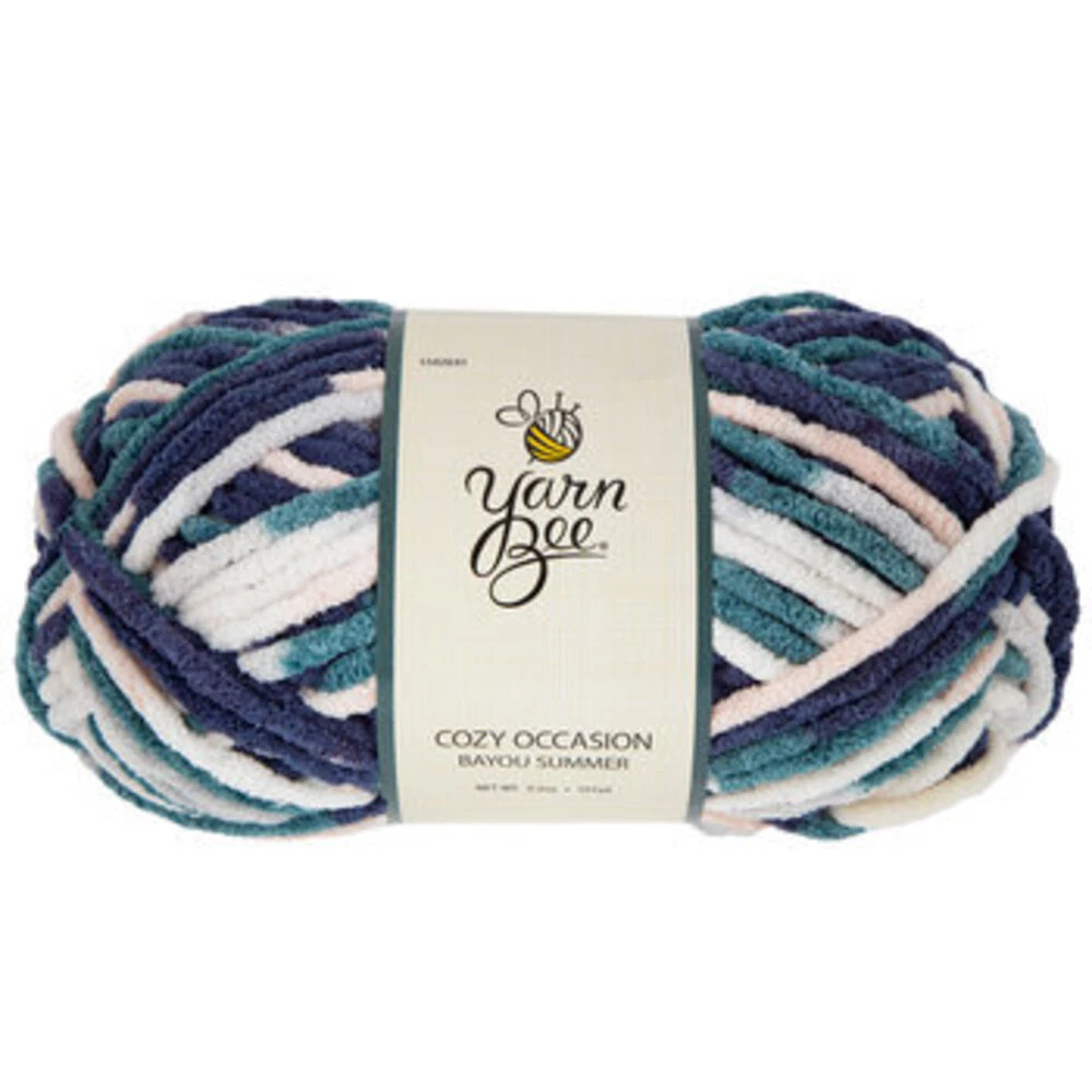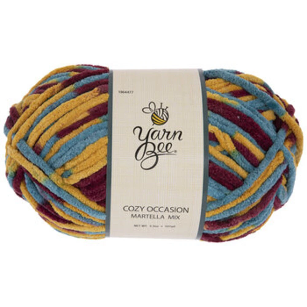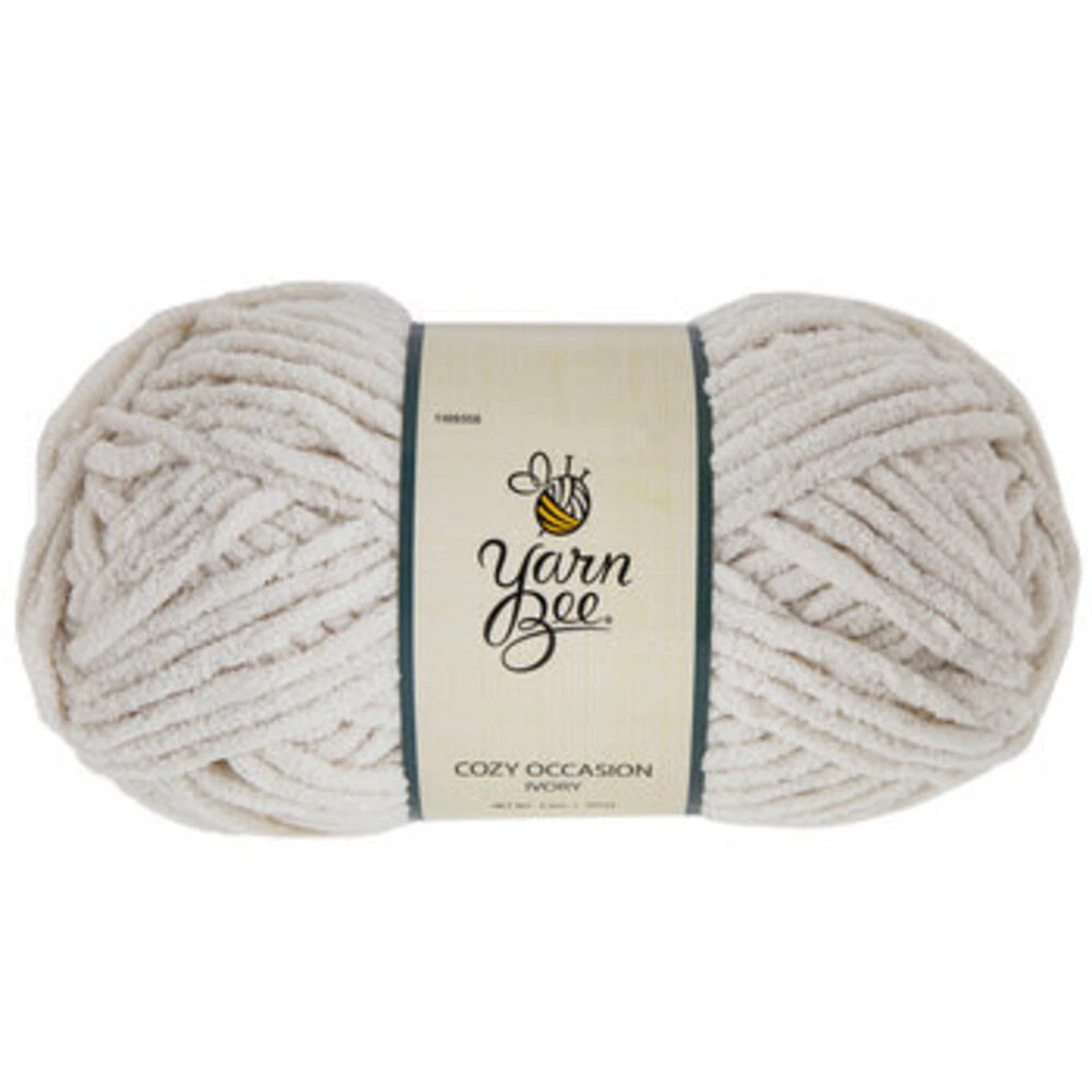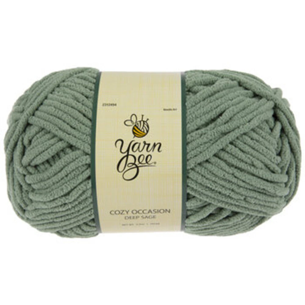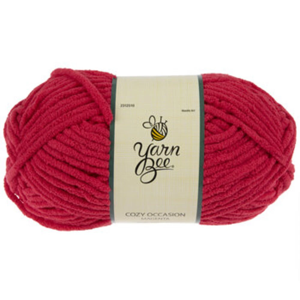 Yarn Weight: 6 - Super Bulky Fiber: 100% Polyester Brand: Yarn Bee Cuddle up with comfort and warmth. Featuring a lovely color, this beautiful Yarn Bee Cozy Occasion Yarn is perfect for knitting and crocheting a soft and fluffy blanket, scarf, cowl, and other items that will keep you cozy. Find your inspiration and create with color.