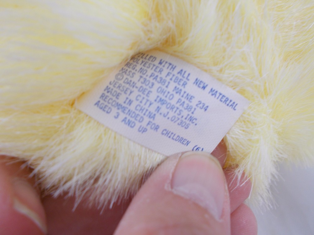 Dan-Dee Imports Yellow Bunny Rabbit Plush 8" To Top of Head - great played with condition, light play wear from play/handling, very fluffy.