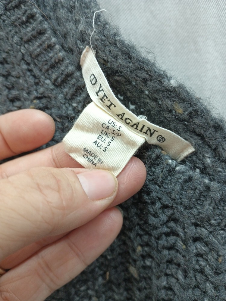 Elevate your wardrobe with this yet again pullover sweater. The soft and cozy material is a blend of nylon, alpaca, wool, and acrylic, making it perfect for those chilly days. The sweater features a solid pattern with a crew neckline and long sleeves, and is tied with a cute knot closure. The brown color and crochet accents add a classic touch to this lightweight sweater, which is perfect for any occasion. The sweater is available in size small and is ideal for women who love to stay stylish and comfortable. Add this sweater to your collection and enjoy the warmth and elegance it brings to your wardrobe.