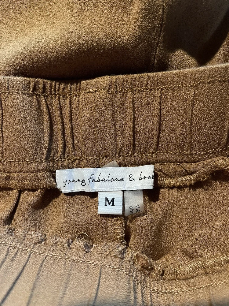 Young Fabulous Broke Medium Athleisure Tan Soft Cozy Joggers Elastic Tie Waist. Very good condition Waist 30” Inseam 26” Mid Rise