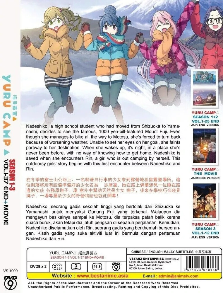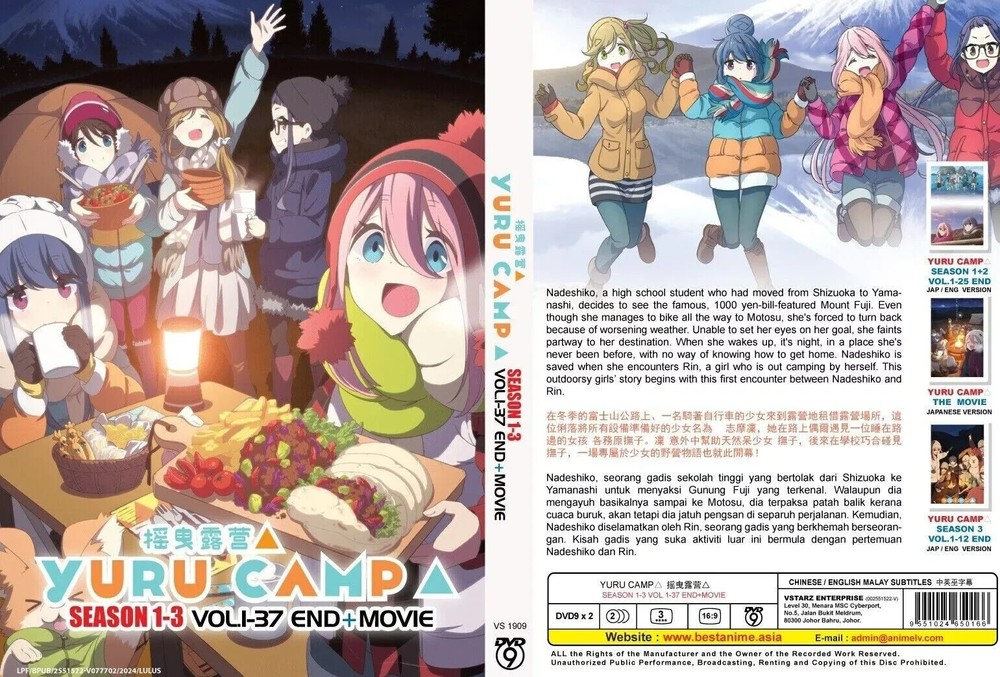 Exclusive Offer: FREE PINBADGE with Every Purchase! DVD Title Name Laid Back Camp No of Disc 2 Disc Version English / Japanese (Season 1-3) Japanese (Movie) Subtitles Chinese / English Format DVD / NTSC & All Region Code (16:9) Shipping & Packaging Information: Welcome to TheCloud9Shop, where our curated selection of anime DVDs is designed with true weebs and anime lovers in mind! We're thrilled to serve you!!! Please allow 2-3 weeks for international delivery. At TheCloud9Shop, we go the extra mile to ensure your order arrives in perfect condition. Each DVD is carefully protected with high-quality bubble wrap and placed in a durable shipping box. We partner with experienced shipping professionals who understand the importance of safe delivery. Track your shipment with the provided tracking number for peace of mind. If you have any questions or need assistance, our dedicated customer support team is always here to help. Trust TheCloud9Shop for top-notch anime DVDs and enjoy a free pin badge with every purchase!