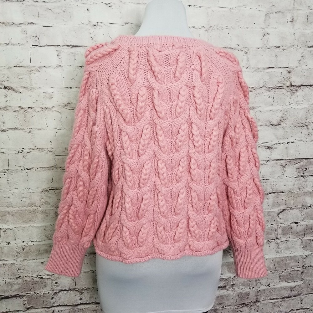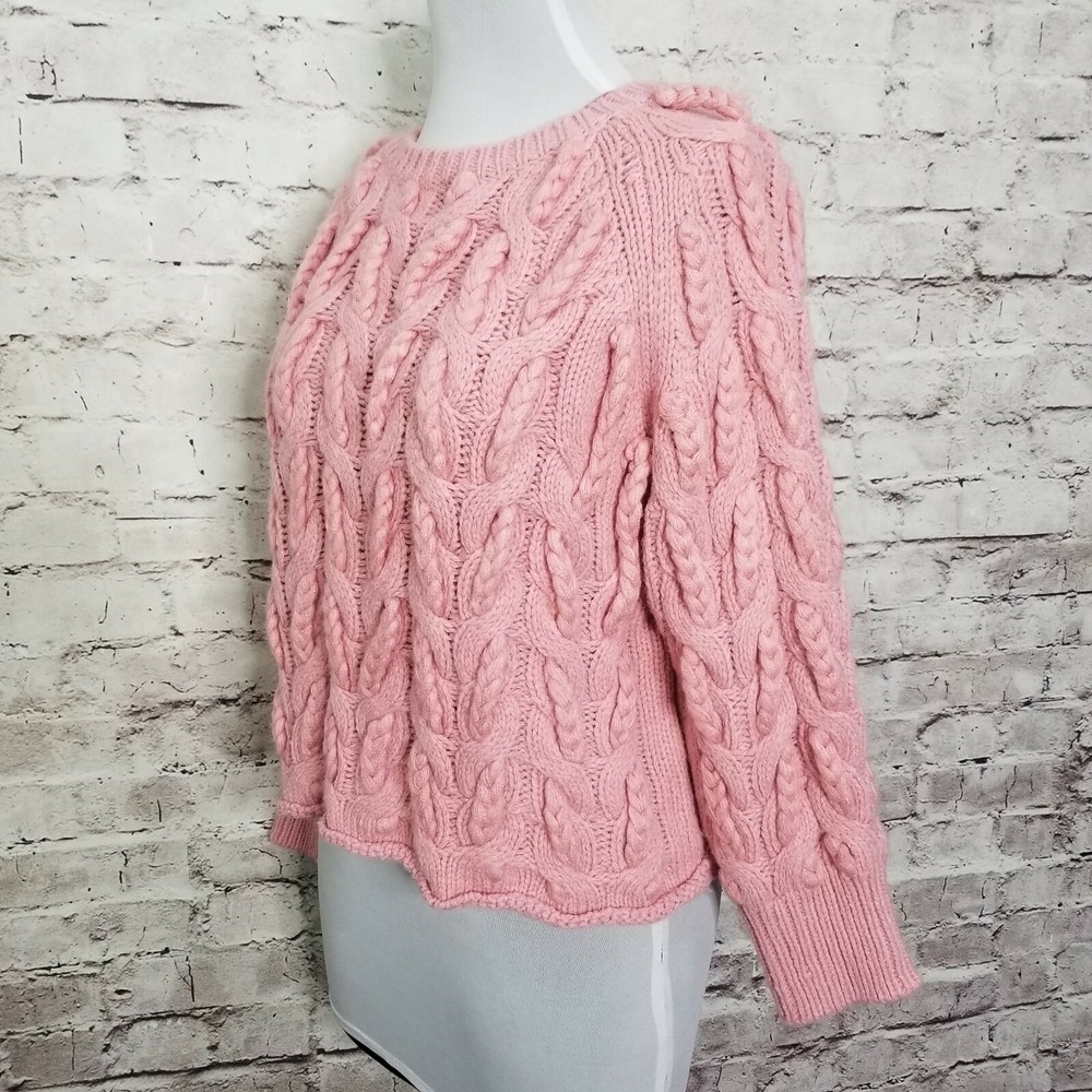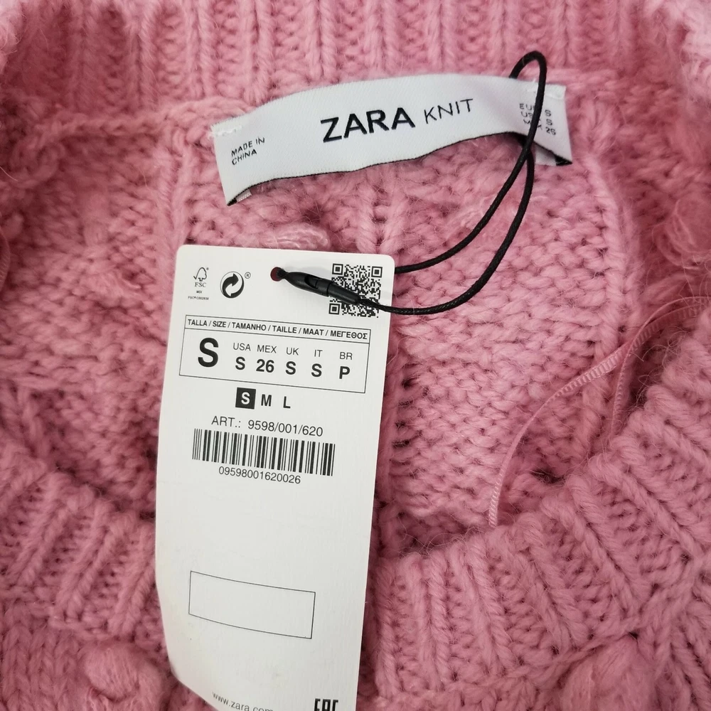 Beautiful cable knit sweater featuring an intricate woven pattern throughout. Ribbed crew neckline and cuffs for a classic finish. Relaxed, slightly oversized fit perfect for layering. Soft and cozy texture ideal for casual outings, weekend brunches, or cozy nights in. The pretty pink shade adds a feminine touch to any winter or spring outfit. In excellent condition with no signs of wear, pilling or damage. Brand: Zara Knit Size: S Condition: new with tags Material: acrylic/nylon Measurements laying flat are: Chest: 25" Waist: 23" Length: 21" (collar to bottom) Keywords: cable knit, pink sweater, chunky knit, oversized sweater, winter sweater, cozy pullover, casual sweater, long sleeve sweater, ribbed sweater, knitwear, cozy, comfy, comfortable, soft, plush, oversized, warm, girly, femme, chic, stylish, unique, street,