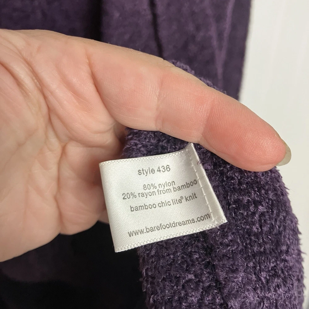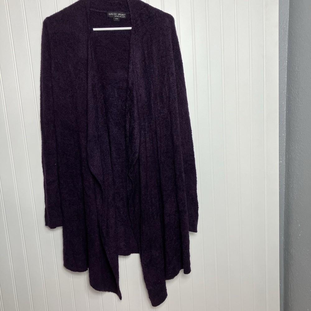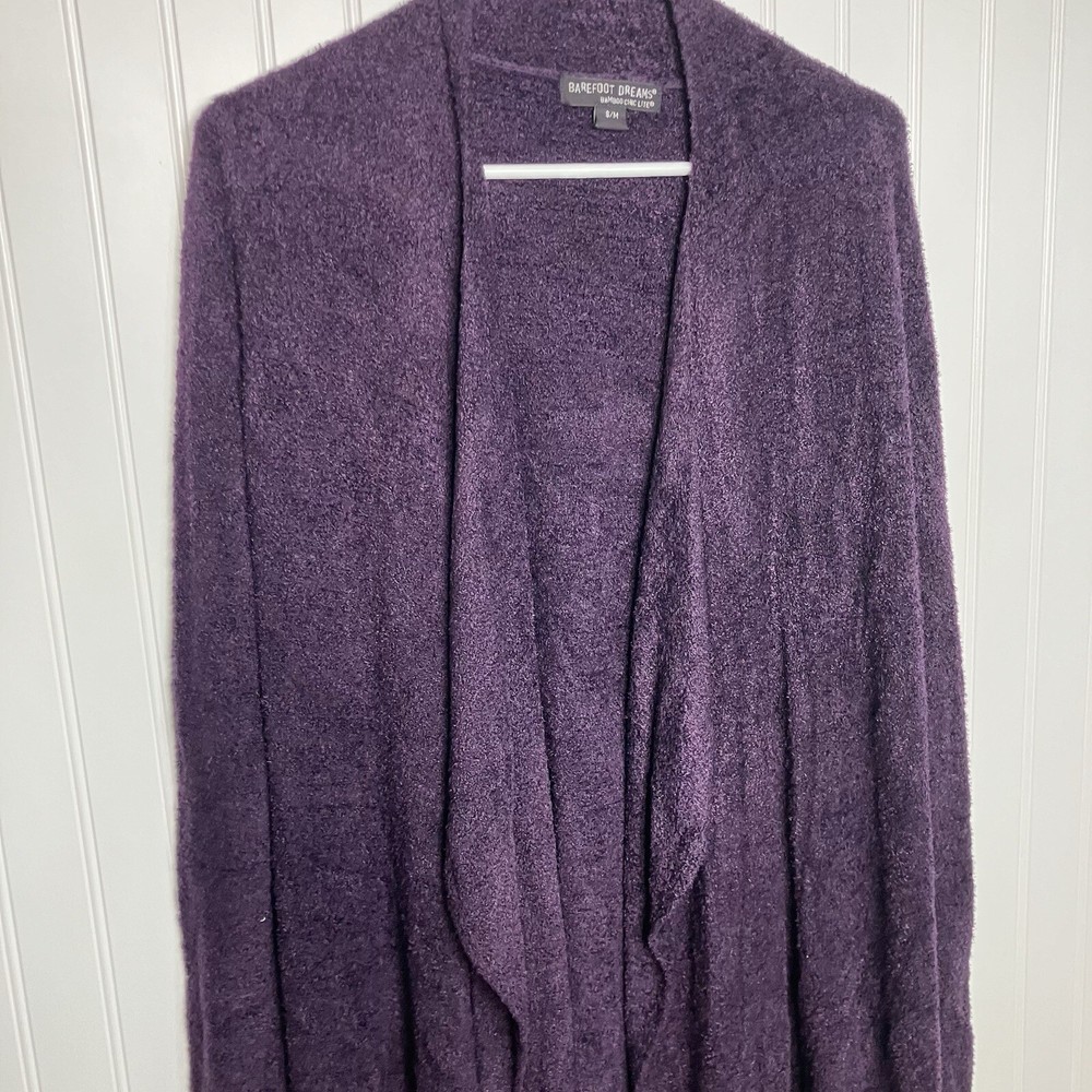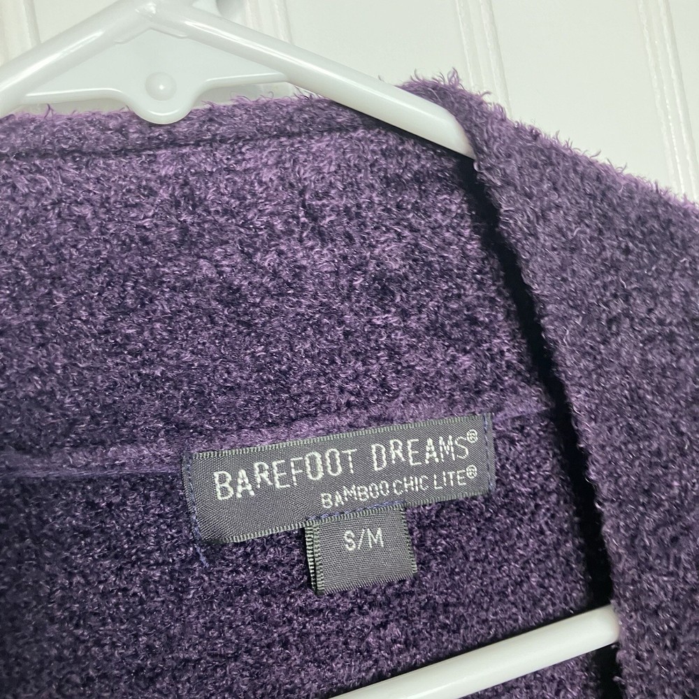 Great condition Approximate length not including collar: 33.5” This Barefoot Dreams sweater is the perfect addition to your fall and winter wardrobe. The soft, cozy fabric is ideal for keeping you warm on chilly days, while the purple color adds a touch of dreamy charm to your outfit. The cardigan style is versatile and can be dressed up or down, making it a great choice for any occasion. The sweater is designed for women in size S/M and features the Barefoot Dreams brand. With its comfortable fit and stylish design, this sweater is sure to become a favorite in your wardrobe. Perfect for the winter season, this sweater is a must-have for any fashion-conscious woman.