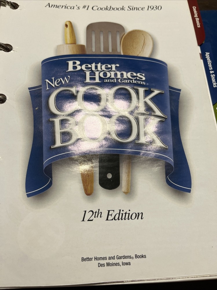 Better Homes & Gardens cookbook 12th edition. This cookbook is in very very good condition except for the hardcover as shown in picture.