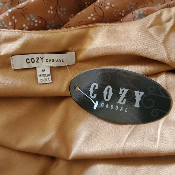 NWT Size M Cozy Casual Brown, Blue, White Attached lining Adjustable straps Removable waist tie