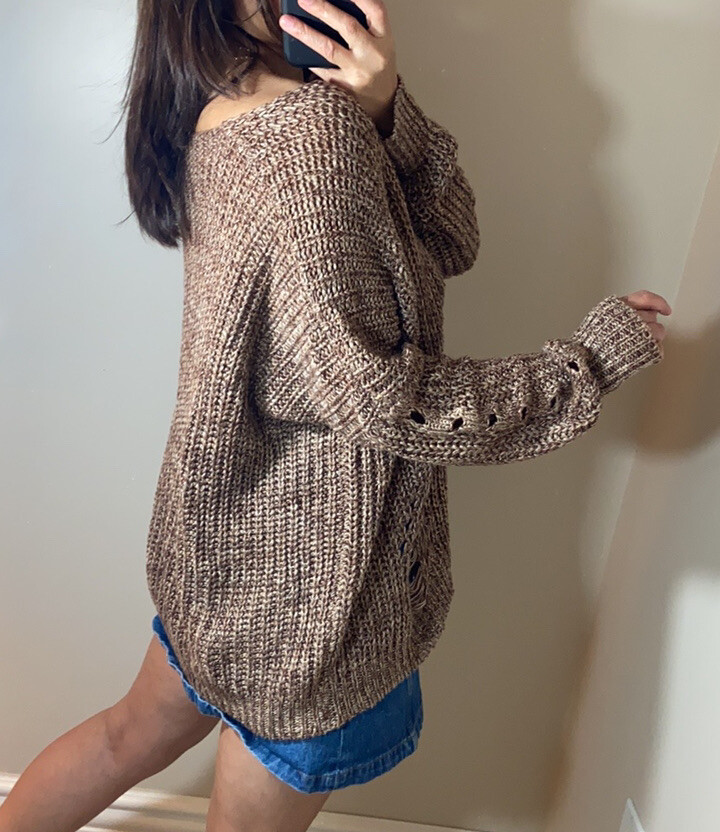 cozy casual sweater. Distressed knit sweater , medium weight , oversized