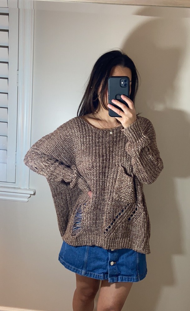 cozy casual sweater. Distressed knit sweater , medium weight , oversized...