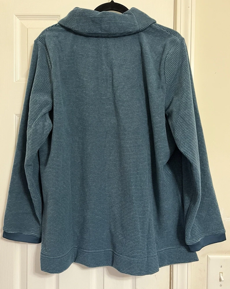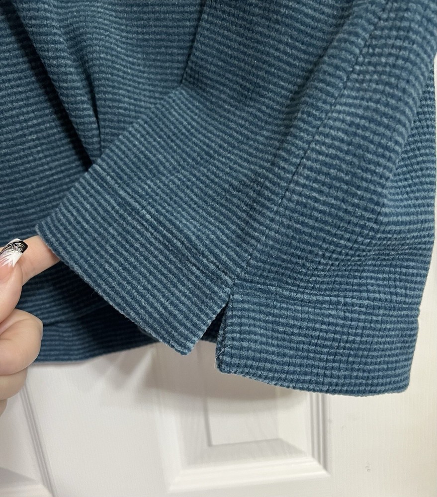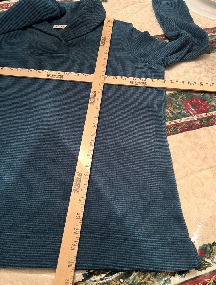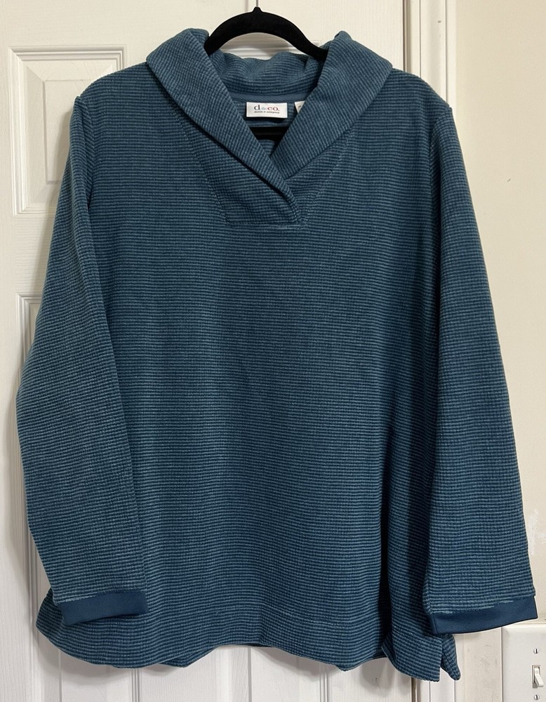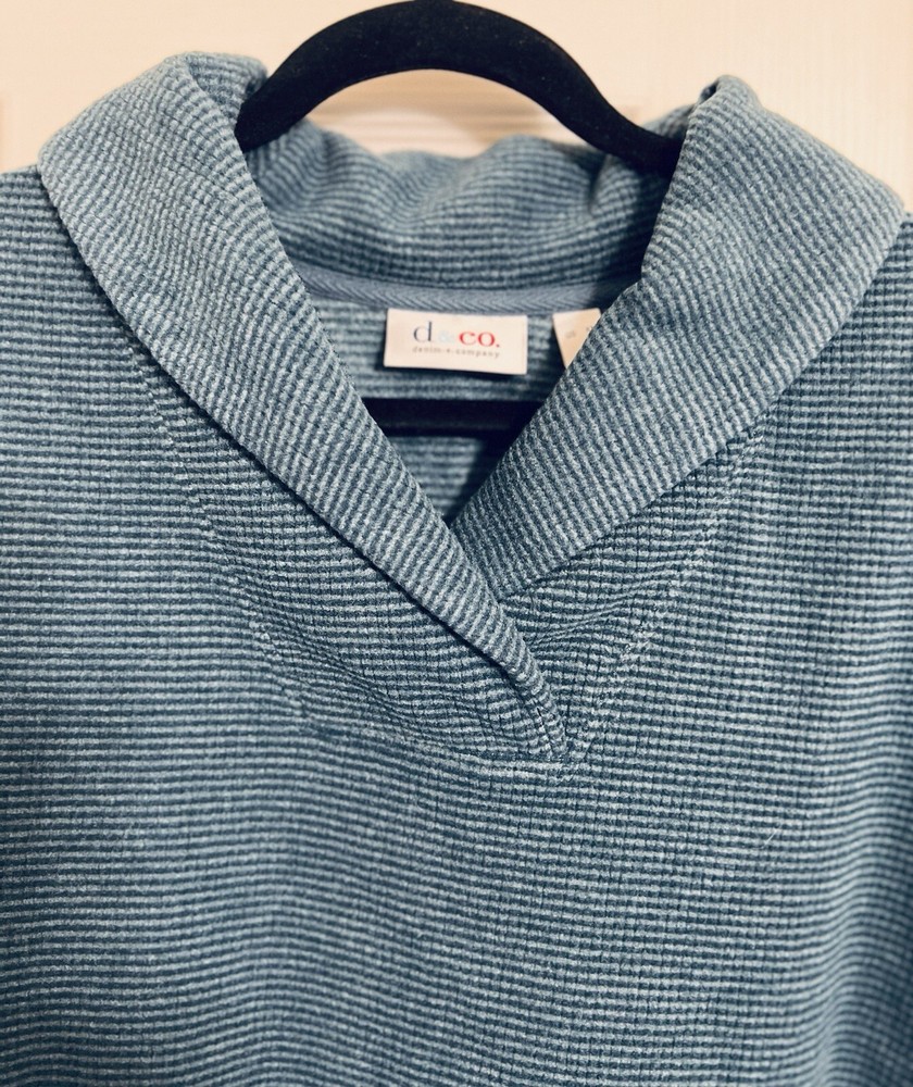 This d & CO pullover top is the perfect addition to your wardrobe. The V-neckline and long sleeves provide warmth and comfort, making it an ideal choice for travel and casual occasions. The solid blue color and tunic style give it a classic look, while the casual sleeve type and pullover closure add a touch of convenience. The top is made of a blend of polyester and rayon, making it machine washable and easy to care for. It is a regular fit and comes in size L, making it suitable for most women. The top is perfect for the fall and winter seasons and is a must-have for any woman who values comfort and style. SEE ALL PHOTOS FOR DETAILS AND MEASUREMENTS COLORS & PHOTOS: Please understand that lighting may change the colors slightly based on the photography lights, natural lighting, flash, oreven viewing on different screens and monitors. Black is one of my most difficult colors to take good photos of. I do try my best to describe the colors, opinions may also differ, please keep this in mind. This product has been described to the best of my knowledge, detail and truthfulness. Detail photographs are always provided of the item/actual product being sold. These photographs can often describe the item more thoroughly than words. Every reasonable effort has been made to disclose any known defects if any. Please feel free to ask questions or additional photos Always feel free to reach out and ask questions and or for additional photos.