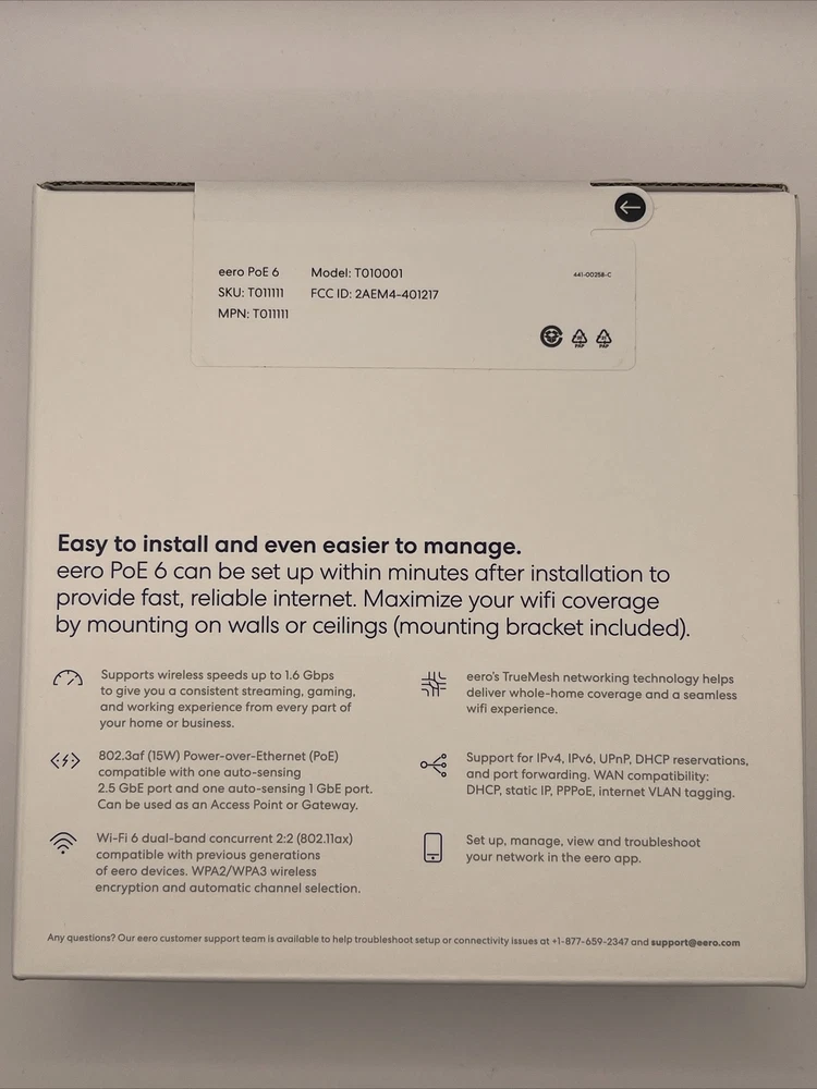 eero PoE 6 1.6 Gbps Wi-Fi Hotspot Modem - T010001 Dual-band Wi-Fi 6 Mountable. Condition is New. Shipped with USPS Ground Advantage....