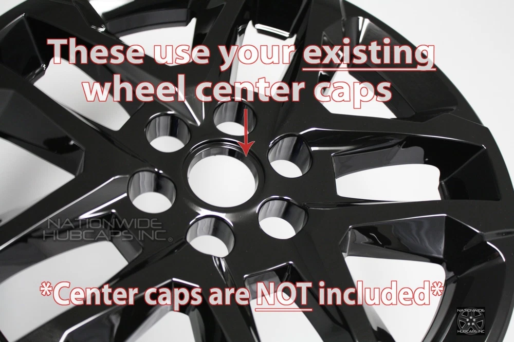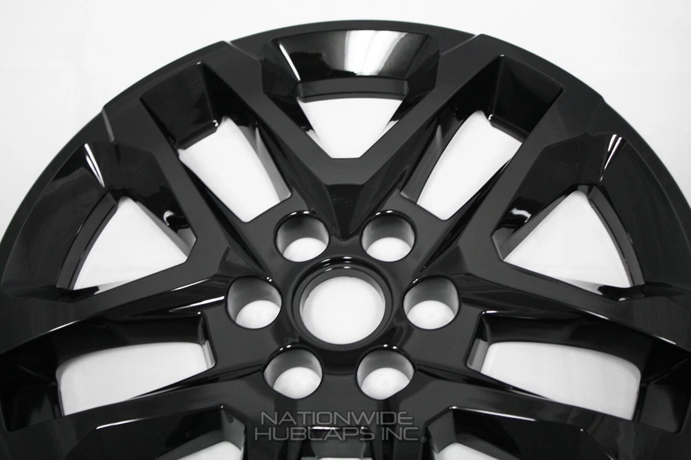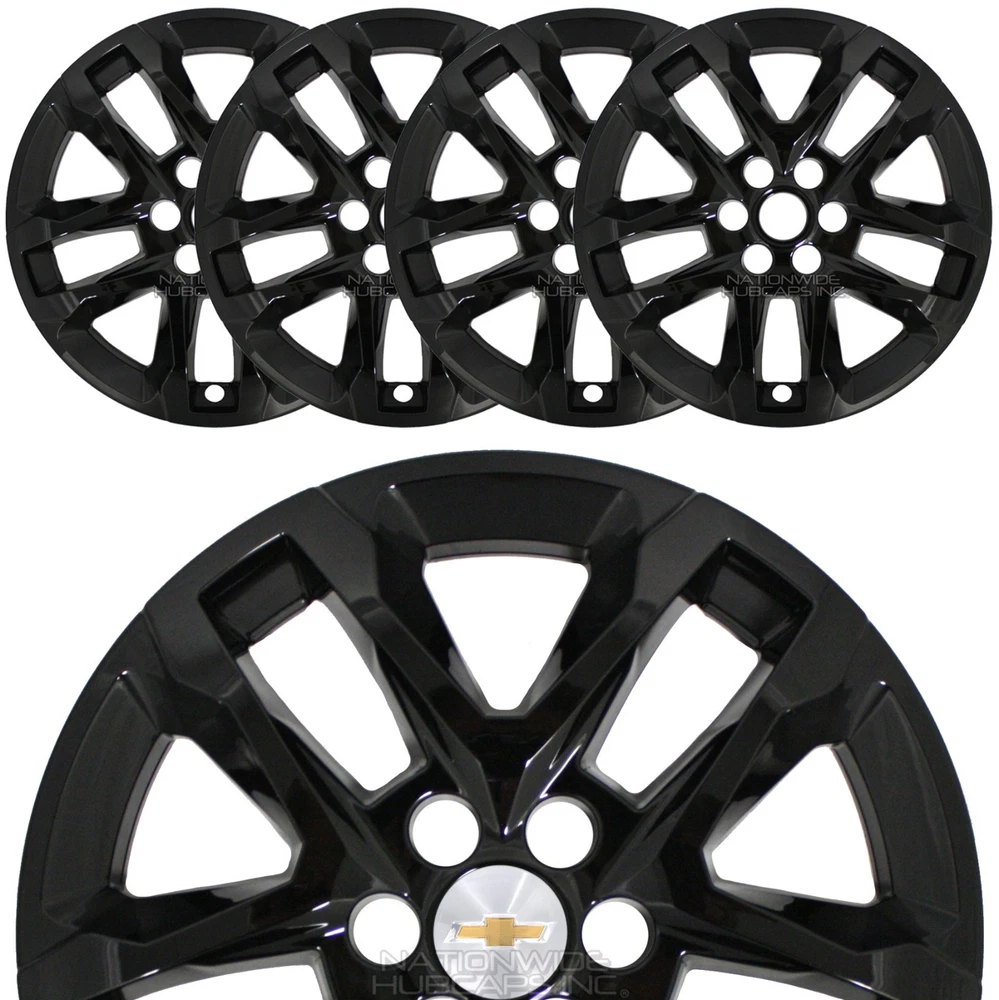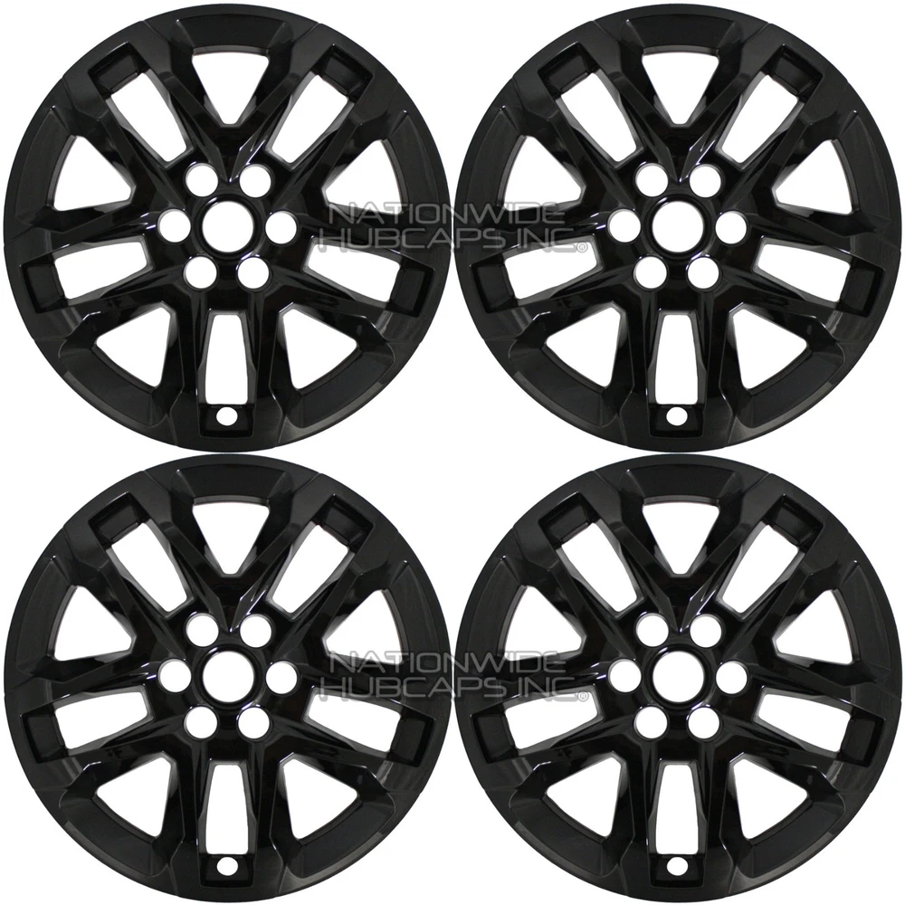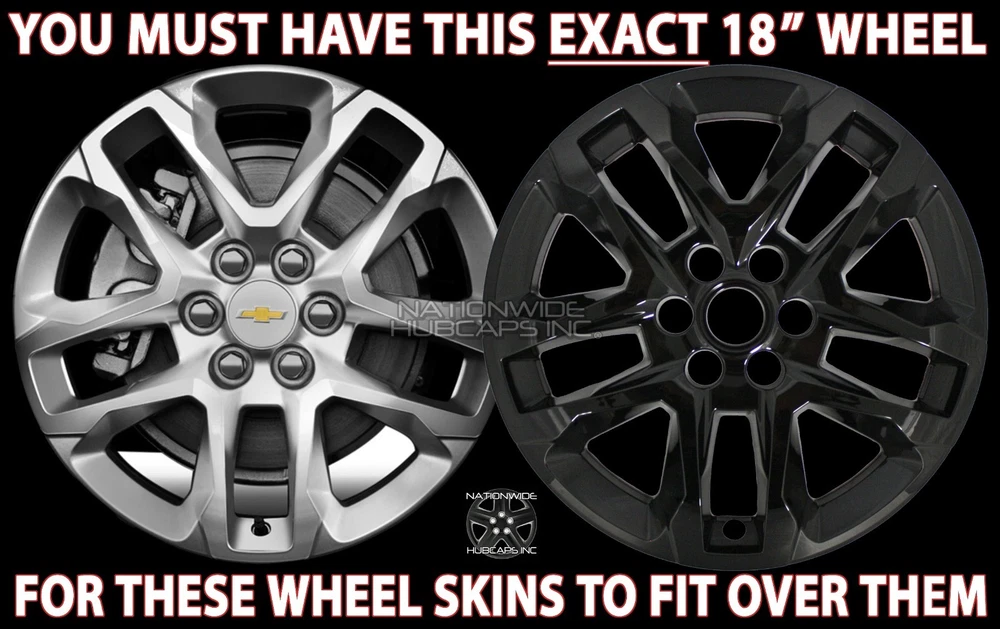 <img src="https://ti2.auctiva.com/web/aswCredit.gif" border="0"><br><a href="https://pages.ebay.com/seller-center/listing/listing-advanced-sellers/third-party-listing-tools.html#auctiva" target="_blank"><img src="https://ti2.auctiva.com/images/sc1line2.gif" border="0"></a> New Set of 4 18" Gloss Black Wheel Skins fits 2018-2023 Chevy Traverse Brand New Set of 4 18" Gloss Black Wheel Skins ** PLEASE LOOK AT ALL 12 (twelve) PICTURES PROVIDED ** (...AND YES, YOU REALLY WILL GET ALL 4 WHEEL SKINS FOR THE LOW PRICE LISTED ) fits '18-'23 Traverse with 18" rim pictured New Set of 4 Gloss Black Heavy Duty Exact Fit Wheel Skins. These fit only the 18" Alloy Wheel that is shown in 2nd Picture. To install, first you will pop out your Chevy center cap from your wheel, then snap these wheel skins on over your wheel. Then just snap your center caps back in place in the wheel skins. That is all there is to it! These will cover up your entire wheel, and will expose only your Existing Center Chevy Emblem and your Lug Nuts, see picture # 4. No, these will not fit any steel wheels, these will only fit over the 18" alloy wheel shown in the 2nd picture. Shown installed in 3rd picture. Wheel skins are made of heat/impact resistant auto grade ABS, then painted gloss black for a beautiful and aggressive looking finish. These snap on tight & secure to your wheel. Very easy to install, t hese snap on behind the spokes of the wheel. Retaining clips molded into wheel skins, shown in pictures # 7-8. Very easy to install, just line them up & push them on over your rim. NO NEED TO WORRY, THESE WILL NOT INTERFERE WITH ANY OF YOUR WHEEL WEIGHTS, IT WILL NOT BE AN ISSUE AT ALL. If you have any questions about fitment, we will be glad to answer them. No Chevrolet emblems are included, these use/expose your existing center caps. Please refer to picture # 4. PRICE INCLUDES 4 WHEEL SKINS & FREE SHIPPING** **NOTE: Free Shipping to Lower 48 US States Only! AK, HI, PR, US Territories & International Cost Extra ANY QUESTIONS, WE CAN HELP YOU DETERMINE WHAT YOU NEED NATIONWIDE HUBCAPS 800-758-1782 WHEN CHECKING YOUR TIRE SIZE, DO NOT MEASURE THE HUBCAP, IT WILL GIVE A LARGER SIZE THAN NEEDED. FOR THE CORRECT SIZE IT GOES BY THE TIRE SIZE. CHECK THE SIDEWALL OF YOUR TIRE FOR A SERIES OF #'S LIKE: P235/60/R18 . THE R18 IN THE EXAMPLE IS THE HUBCAP/TIRE/WHEEL SIZE YOU NEED TO ORDER THE CORRECT SIZE. BY ENTERING A QUANTITY OF 1 YOU WILL GET 4 WHEEL SKINS SHIPPED TO YOU This is a brand new set of 4 snap on gloss black wheel skins that will only fit the 18" alloy wheel we have pictured, for the 2018 2019 2020 2021 2022 2023 Chevrolet Traverse L LS LT Models. These will not fit any other wheel. Once installed they will allow your existing Chevy center emblem and lug nuts to show through. These grab around your lug nuts and behind the spokes of the wheels to hold them on. They stay on very secure and look like factory black wheel when installed.