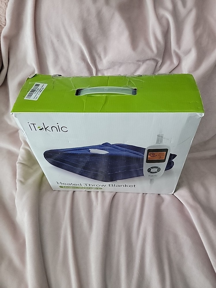 Introducing the iTeknic Electrical Heated Throw Blanket, perfect for cozying up in your bedroom. This blanket boasts a brand name of iTeknic and falls under the category of Home & Garden, specifically Bedding and Blankets & Throws. It features a heated function to keep you warm and snug during colder nights. In addition to its functionality, this blanket also has a stylish appeal with a sleek and modern design. It comes with tags attached, ensuring that it is brand new and unused. Overall, the iTeknic Electrical Heated Throw Blanket is a great addition to your home and provides both comfort and aesthetic value. Never been used but package has been opened so the box had been re-taped and is a little damaged from being moved around