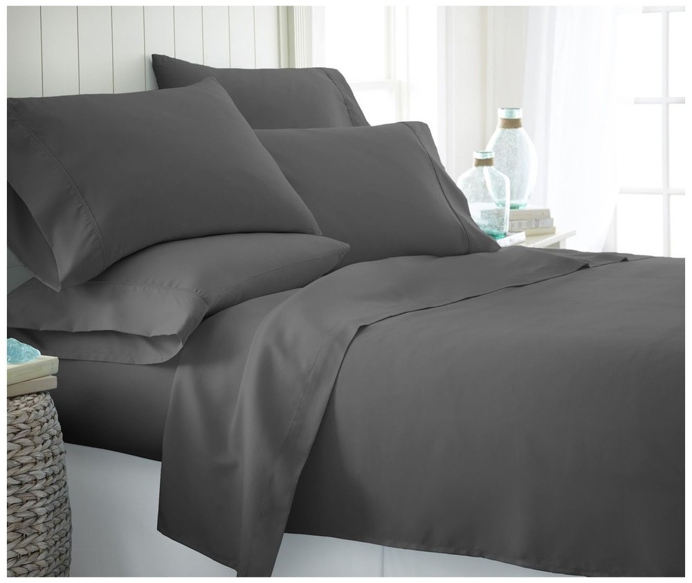 The home collection 6 piece sheet set by ienjoy Home is designed with your comfort in mind. Made of the finest double brushed microfiber yarns creating a new standard in softness and breathability, this 6 piece sheet set will make it incredibly hard to get out of bed in the morning. Our premium yarns are two times more durable than cotton, completely wrinkle free, and perfect for all seasons. LUXURY AND COMFORT-You'll be amazed at how silky soft, and comfortable these luxurious bed sheets are! ienjoy Home luxury sheet sets are designer sheets at an unbelievable price. The perfect fit for any room in your house - bedroom, guest room, kids room, dorm room, RV, vacation home. Great gift idea for men and women, Moms and Dads, Valentine's - Mother's - Father's Day, Birthday, and Christmas. CLASSIC TAILORED LOOK - Set includes: One flat sheet, one fitted sheet (with deep pockets), and four pillowcases. Twin/TwinXL come with two pillowcases. HIGH QUALITY - Ultra soft microfiber fabric woven with the finest craftsmanship. Good hand feel and very cozy to sleep on. Fade, stain, shrink and wrinkle resistant. Machine wash in cold, and quick dries on tumble dry low. More durable than any cotton! TREMENDOUS SELECTION - Colors include Aqua, Black, Burgundy, Chocolate, Cream, Gold, Gray, Ivory, Light Gray, Navy, Purple, Sage, Taupe, and White. QUEEN SIZE BED SHEET SET INCLUDES: 1 Queen Fitted Sheet: 60" W x 80" L + 16"; 1 Queen Flat Sheet: 90" W x 102" L; 4 Standard Pillowcases: 20" W x 30"