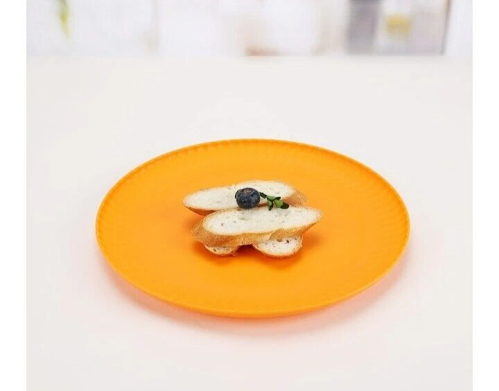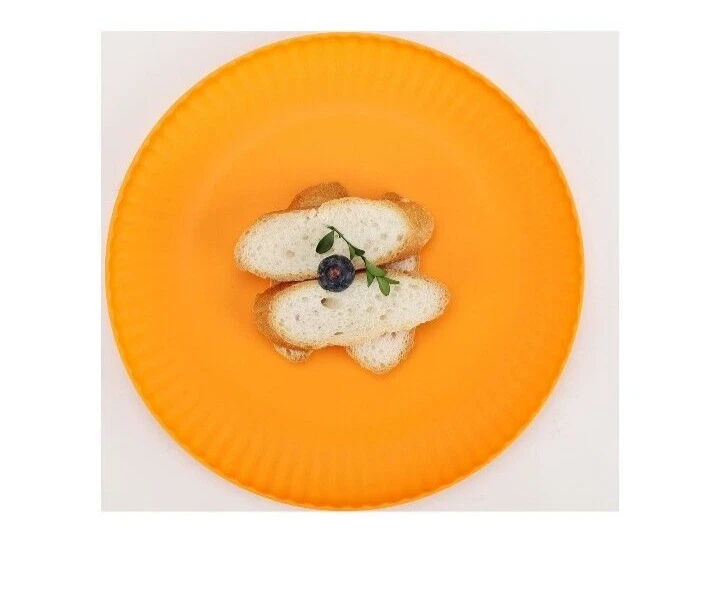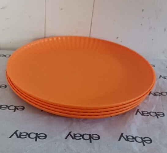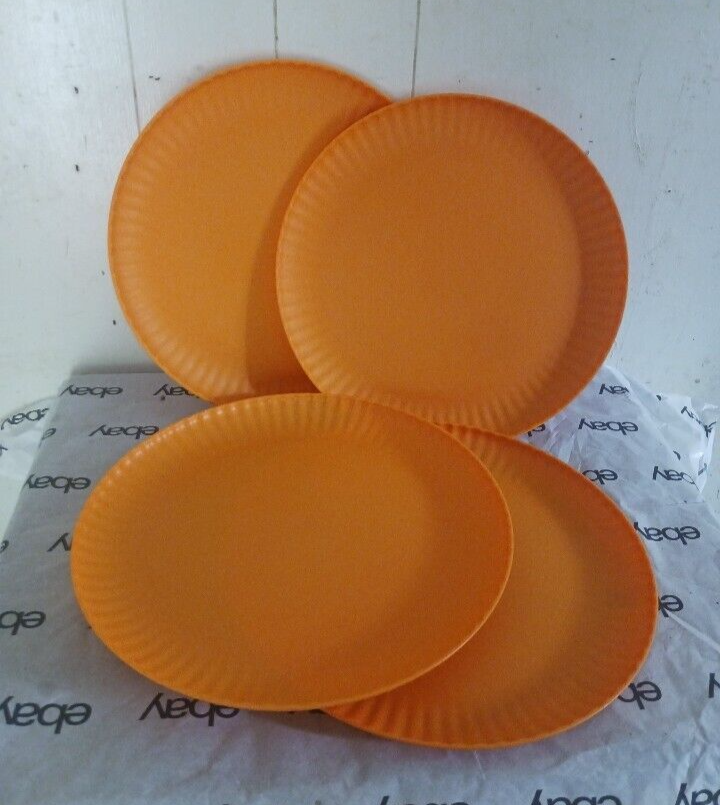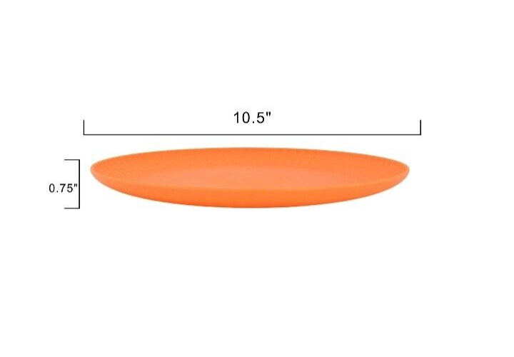 Mainstays Plastic ribbed Dinner Plates, Set Of 4 green NEW! • Material content: Polypropylene Plastic • Featuring a smooth matte finish • BPA Free • Durable and suitable for everyday use • Perfect for entertaining • Suitable for Indoor or Outdoor use • Microwave and Dishwasher safe • (4) Round Dinner Plates (10.5” Diameter) • Color: orange
