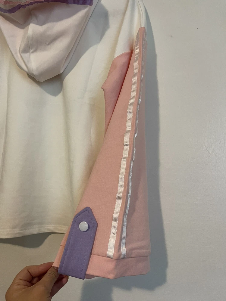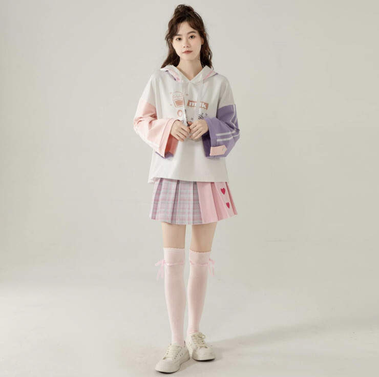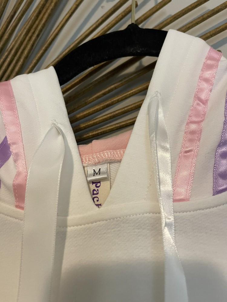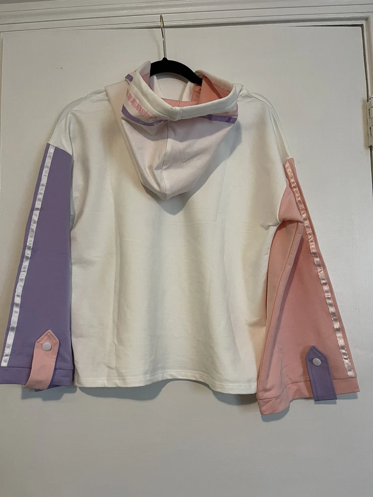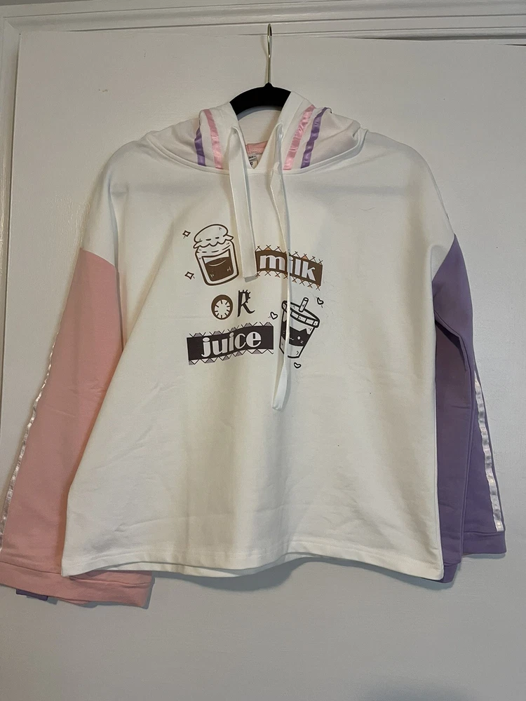 Stay cozy and stylish with this packitcute hoodie, perfect for teens who want to make a statement. The patchwork design features playful milk and juice graphics, adding a fun touch to any outfit. Made with high-quality materials, this hoodie is sure to keep you warm and comfortable all day long. MSRP $50