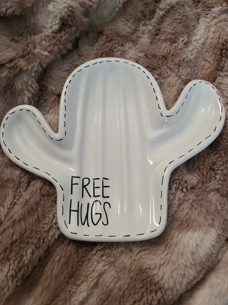 pier 1 imports White Cactus “Free Hugs” Trinket Decor Dish. No Cracks or Sratches.