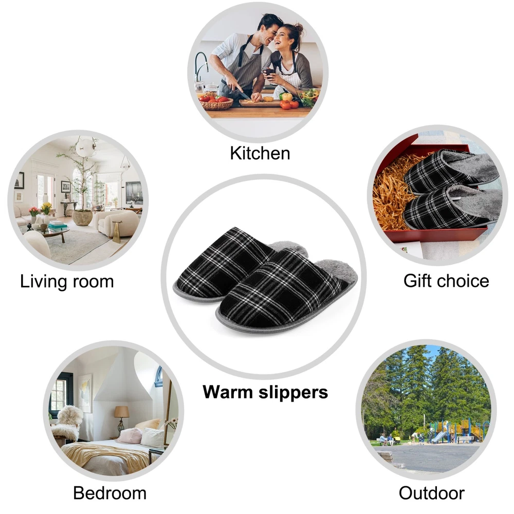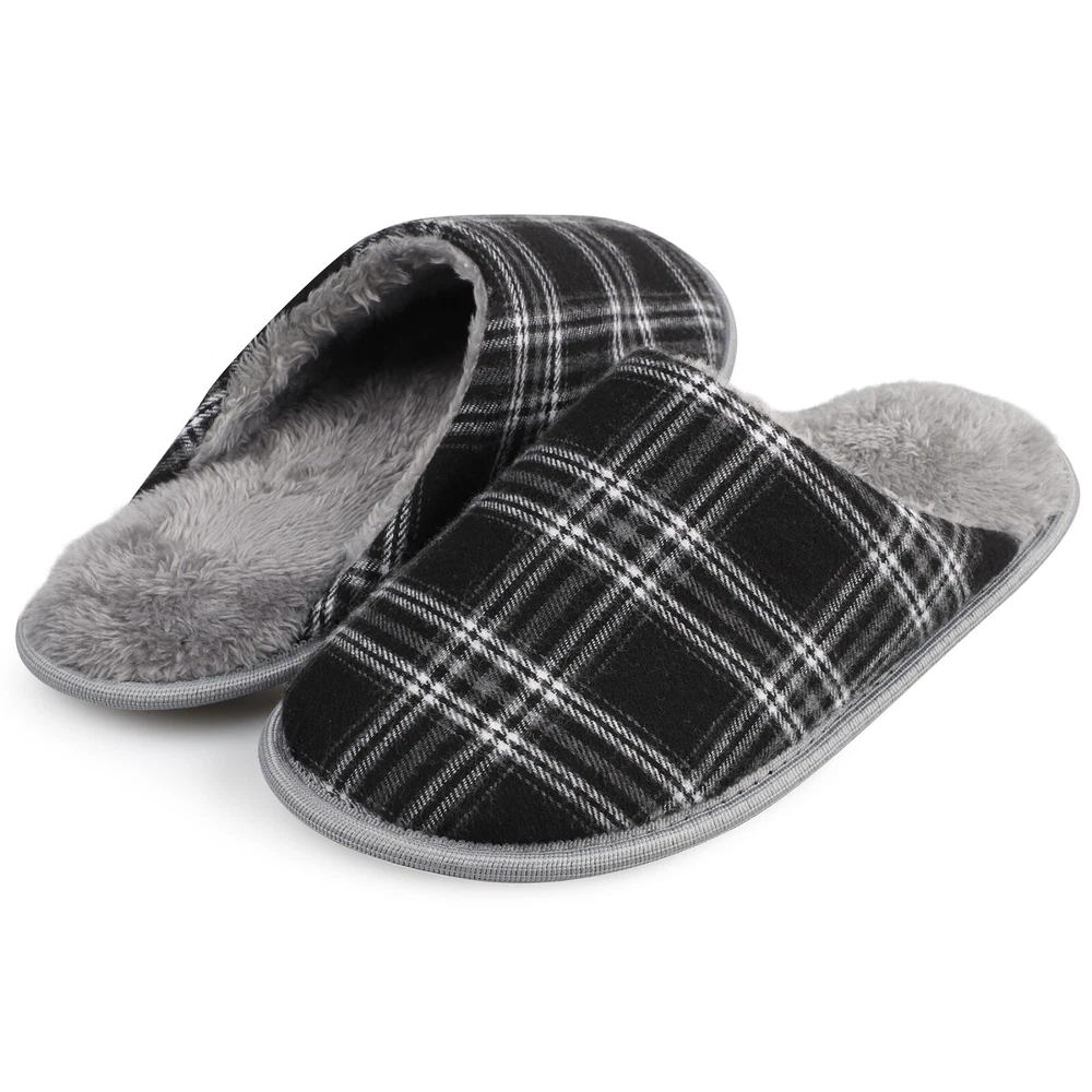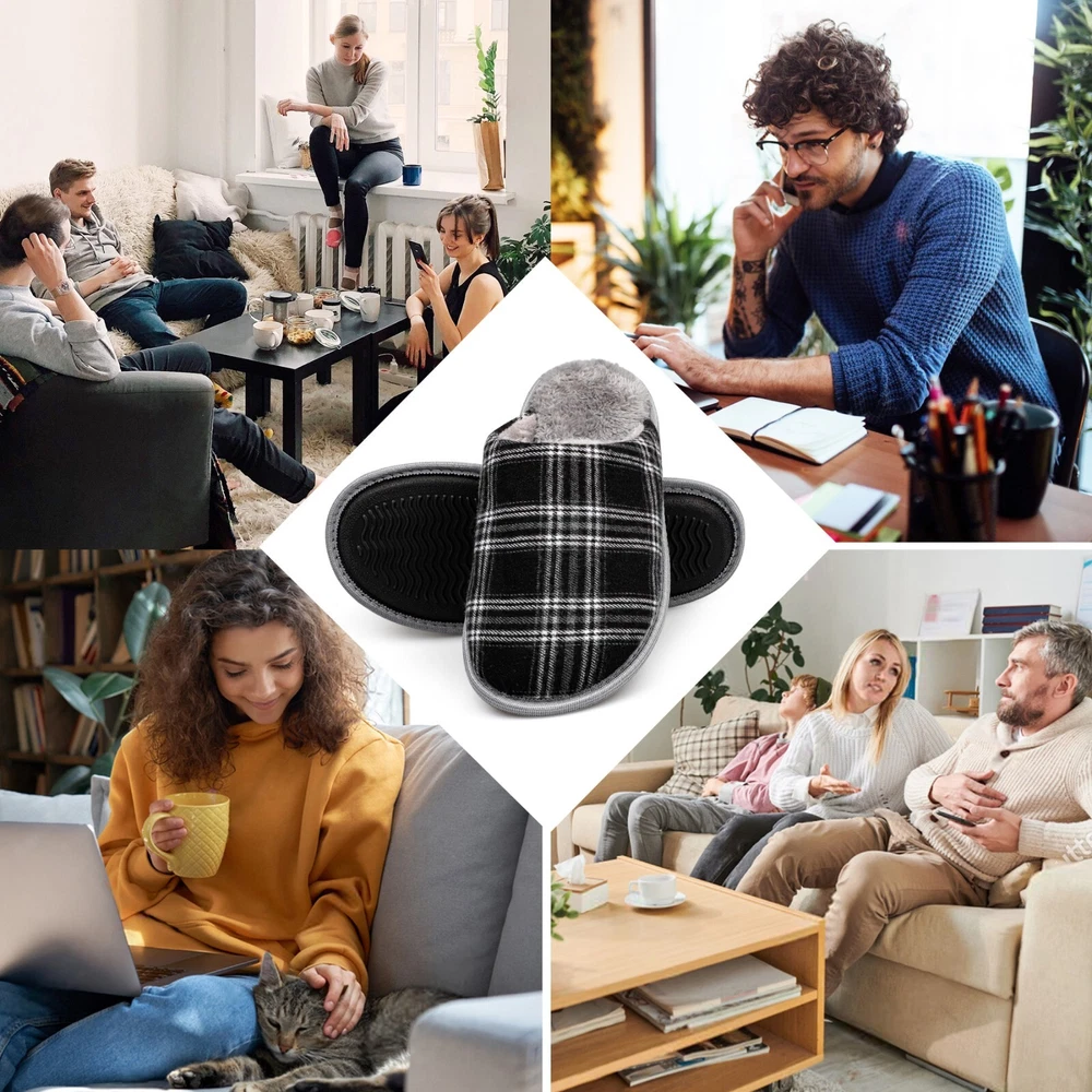 riemot Mens Memory Foam Slippers Cozy Comfortable Slip On House Slippers Shoes The riemot Men's Memory Foam Slippers offer cozy and comfortable slip-on house slippers for men. With a solid or plaid design, these slippers feature a closed toe and slip-on closure for easy wear. The memory foam insole provides added comfort, while the rubber outsole ensures non-slip performance. Perfect for casual wear in all seasons, these slippers are a stylish and practical choice for men looking for both comfort and style in their indoor footwear. Highlights of Riemot House Slippers Delicate Upper riemot house slippers have 2 versions: plaid slippers and solid slippers. The colors are trendy and the material are soft and warm. Cushioned Memory Foam The midsole is composed of EVA and memory foam, making the slippers very cushioned and comfortable to wear, you can move freely indoors/outdoors. Non-slip Outsole Durable TPR outsole provides great traction. The house slippers will not leave marks on the floor, prevent scratching and keep your steps quiet. Warm Furry Lining The inner lining is skin-friendly faux fur, providing warmth and gorgeous wearing experience. Warm gift choice for families friends. RIEMOT HOUSE SLIPPERS FOR MEN & WOMEN HAVE MULTI COLORS AND SIZES FOR YOU.