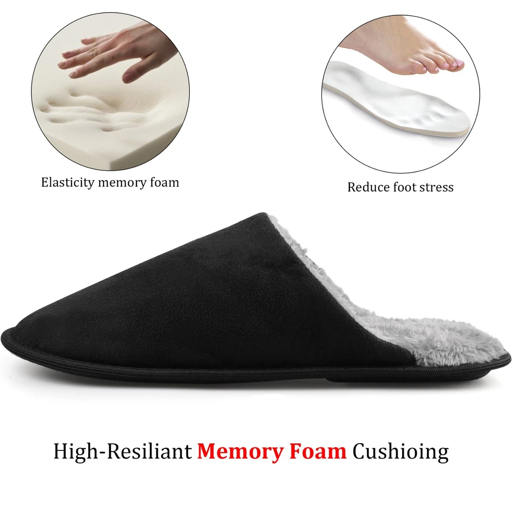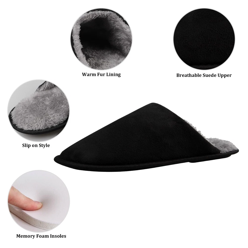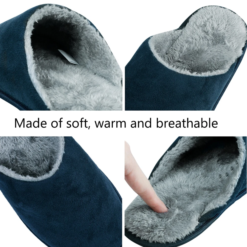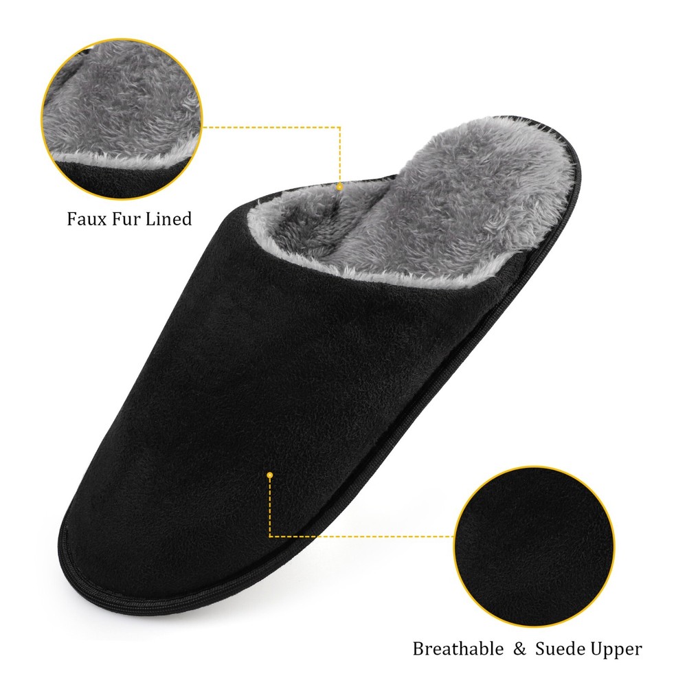 riemot Mens Memory Foam Slippers Cozy Comfortable Slip On House Slippers Shoes The riemot Men's Memory Foam Slippers offer cozy and comfortable slip-on house slippers for men. With a solid or plaid design, these slippers feature a closed toe and slip-on closure for easy wear. The memory foam insole provides added comfort, while the rubber outsole ensures non-slip performance. Perfect for casual wear in all seasons, these slippers are a stylish and practical choice for men looking for both comfort and style in their indoor footwear. Highlights of Riemot House Slippers Delicate Upper riemot house slippers have 2 versions: plaid slippers and solid slippers. The colors are trendy and the material are soft and warm. Cushioned Memory Foam The midsole is composed of EVA and memory foam, making the slippers very cushioned and comfortable to wear, you can move freely indoors/outdoors. Non-slip Outsole Durable TPR outsole provides great traction. The house slippers will not leave marks on the floor, prevent scratching and keep your steps quiet. Warm Furry Lining The inner lining is skin-friendly faux fur, providing warmth and gorgeous wearing experience. Warm gift choice for families friends. RIEMOT HOUSE SLIPPERS FOR MEN & WOMEN HAVE MULTI COLORS AND SIZES FOR YOU.