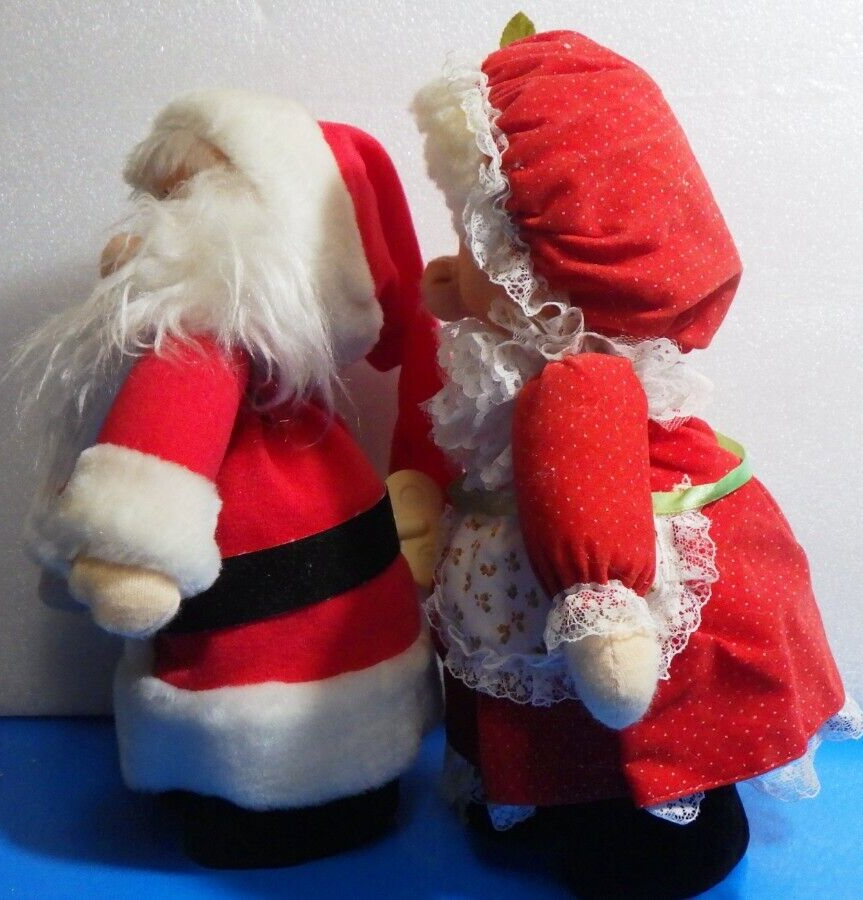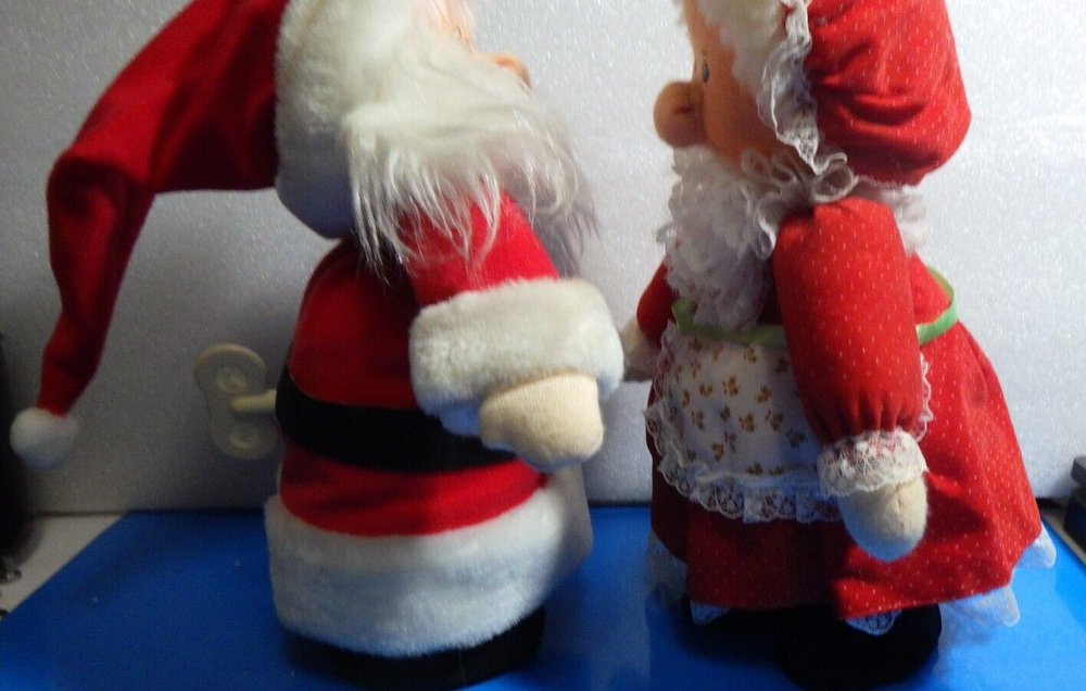 This vintage Christmas Concepts international Santa & Mrs Claus musical figurine set is sure to bring joy to your holiday decor. The set includes one song each featuring the beloved holiday characters, with a wind-up type to power the music. Measuring at 10 inches in height, the figurines are made of cloth and hard foam materials, and feature a multicolor design. The motionette set is an original from the late 20th century, manufactured in Taiwan, and is perfect for collectors or anyone looking to add a touch of music to their holiday decor. The set includes the songs "I'm dreaming of a white Christmas" and "Santa Claus is coming to town", making it a great addition to any Christmas-themed collection. Make sure to check the shipping options for the cheapest shipping for you! I do combine shipping the more you buy the more you save! (smaller items have the best savings) if it ships for the one shipping price that's all you will be charged. I will refund any extra shipping on any combined items. Fast shipping! I go by the Ebay calculated shipping according to the size and weight of the package.. just an old lady at home selling the family storage