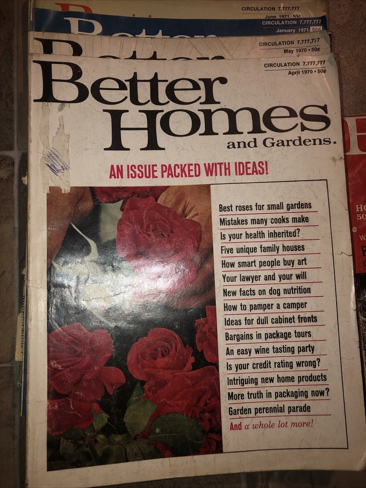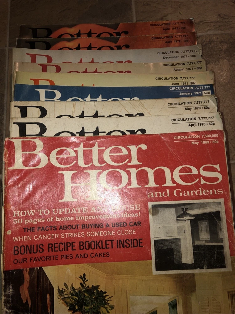 This vintage Better Homes & Gardens magazine lot includes issues from 1969, 1970, 1971, and 1972. The magazines feature a variety of topics such as home and garden, women's fashion, cooking, alternative lifestyles, architecture, and more. The publications are in English and are perfect for collectors or anyone interested in the history of home decor. The magazines cover a range of themes and include articles on holidays, lifestyle, agriculture, and money and finance. The topics are relevant to this day and make for an interesting read. This lot is a must-have for anyone interested in the history of home decor and the culture of the 1970s.