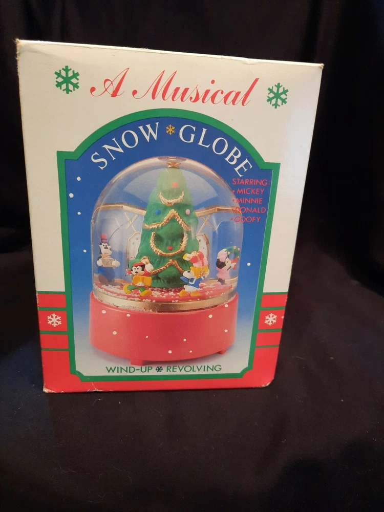 Disney's Christmas Snow Globe Revolving Music Box featuring "Mickey, Minnie, Donald & Goofy" Song: We Wish you a Merry Christmas Condition: NIB Material: Plastic Year: 1990's Size: Approx Double Sided: Yes Shape: I am listing a lot of ornaments and other Holiday items. I will combine shipping. Check out my Ebay Store I do my best to describe items as accurately as possible but I am not a professional grader and definitions of perfection and flaws differ greatly form one individual to the next so please study the pictures and do not hesitate to ask questions. I will answer them all as quickly and as thoroughly as I can. I will also be happy to send additional pictures upon request. *Note: If by some chance you experience an issue with your purchase, please contact us immediately so that we can provide a prompt solution before leaving negative feedback; We value your business. I SHIP WITHIN THE UNITED STATES ONLY! I do combine shipping send me an email and I will send you an invoice. Shipping for this item in the US will be calculated by your zip code. I accept PayPal only and expect payment within 3 days of auction end. If payment is not received or if you have not contacted me explaining the payment delay then a case will be opened on the fourth day to start the process of getting my fees refunded so I can relist the item. The sooner you pay, the sooner I can ship. I am downsizing my collection so I do not accept returns or refunds. The item(s) is sold as is so please be 100% certain that the item(s) you are bidding on is exactly what you want. Thank you so much for checking out my auction, and my EBAY store. I greatly appreciate it. Be sure to check back frequently as I will be posting much more. Best of luck if you are bidding.