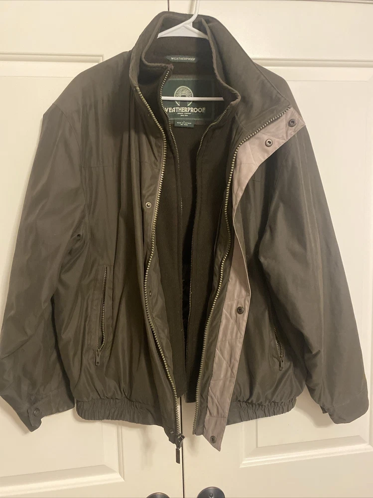 This green bomber jacket from Weatherproof blends vintage charm with modern durability. The nylon shell and cotton lining feel premium, while the weatherproofing keeps you dry in any season. Perfect for outdoor adventures or casual outings, the stylish design with logo accents makes it versatile for work or social events. Fits true to size and offers great comfort—definitely worth adding to your wardrobe!
